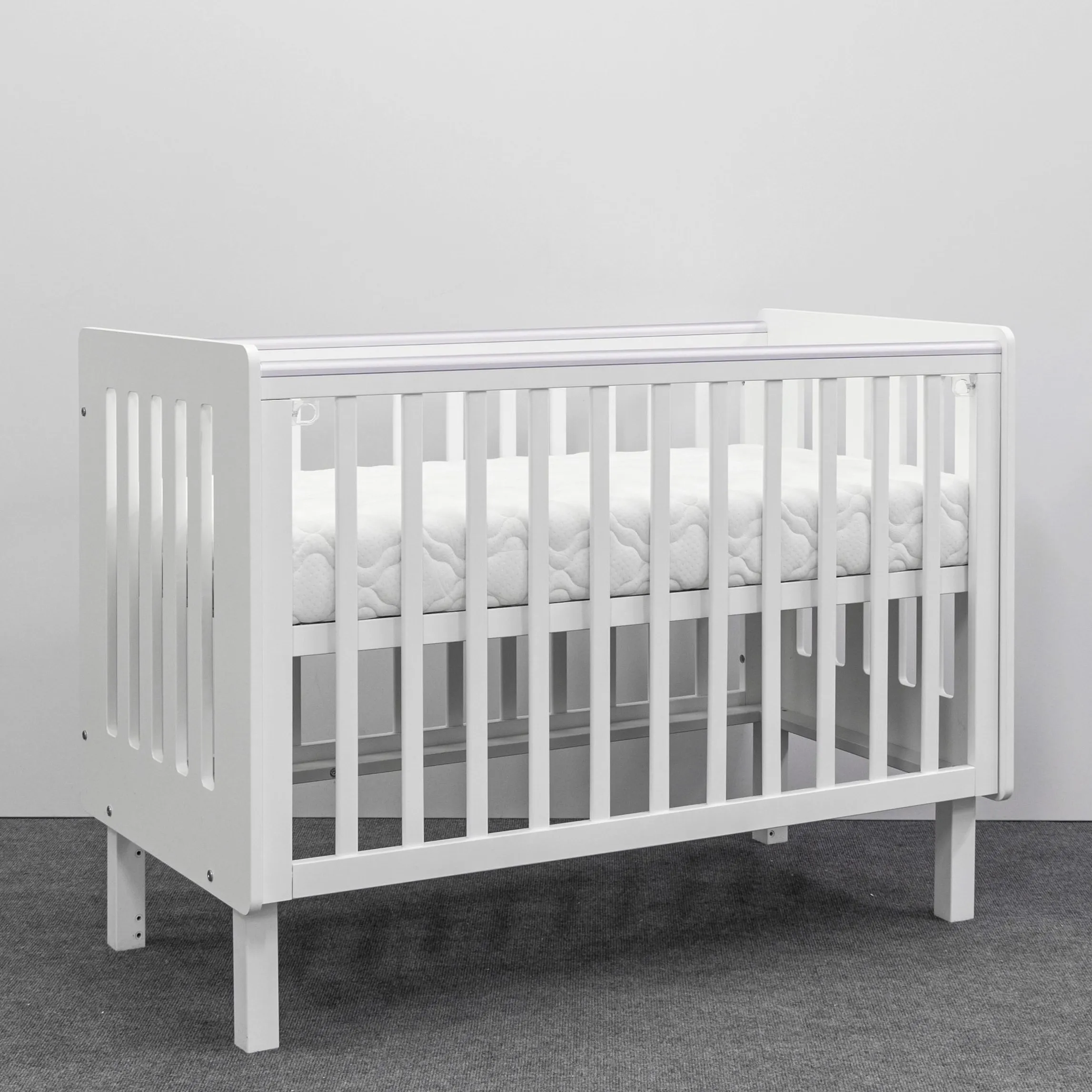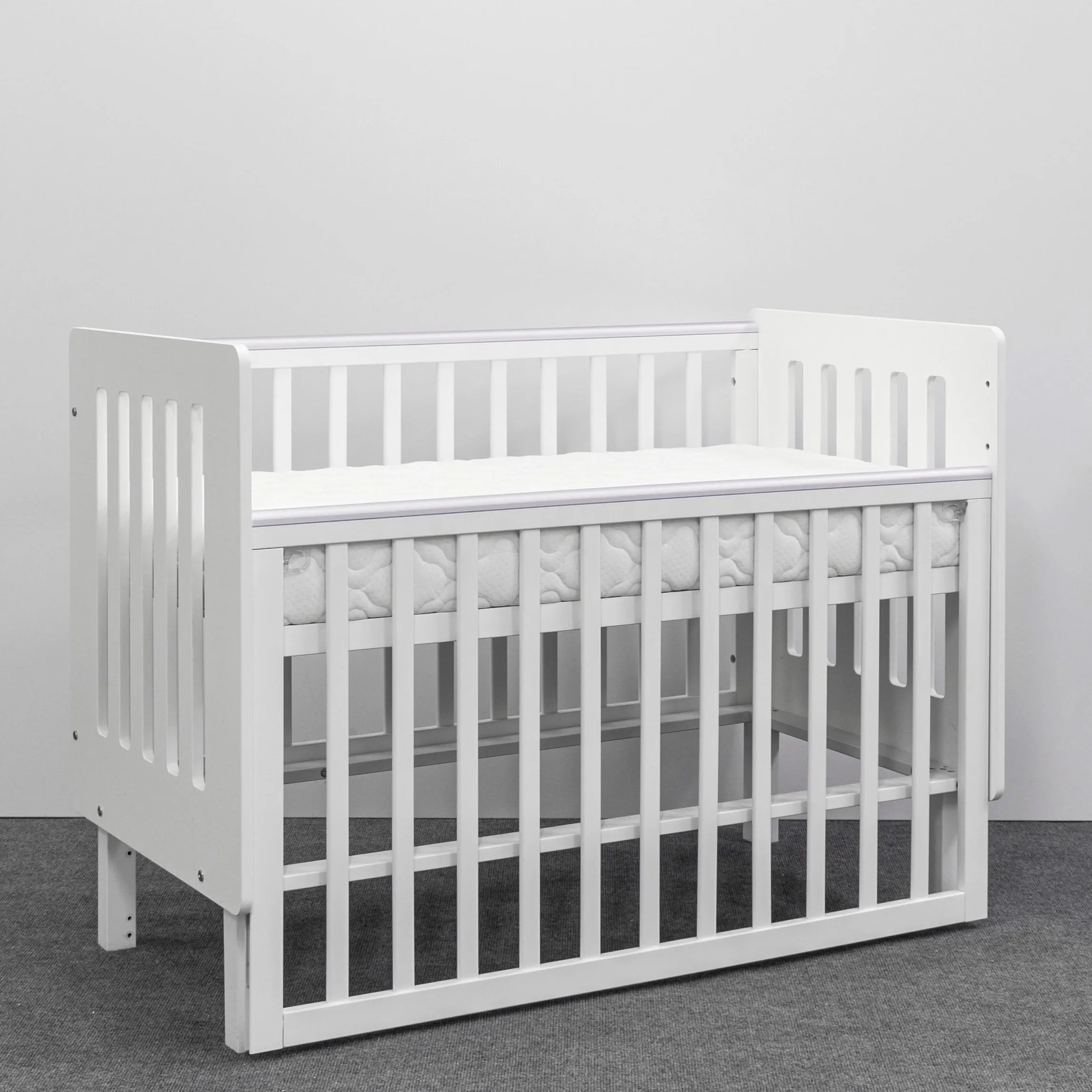 Кроватка Mari — это многофункциональная кроватка без острых углов, которая станет безопасным и уютным местом для сна и игр вашего малыша. Съемная передняя стенка фиксируется по высоте и дает возможность трансформировать кроватку в приставную. Дно кроватки устанавливается в 3-х положениях, что позволяет обеспечить безопасность для малыша и удобство в использовании. Размер спального места 120х60 см.