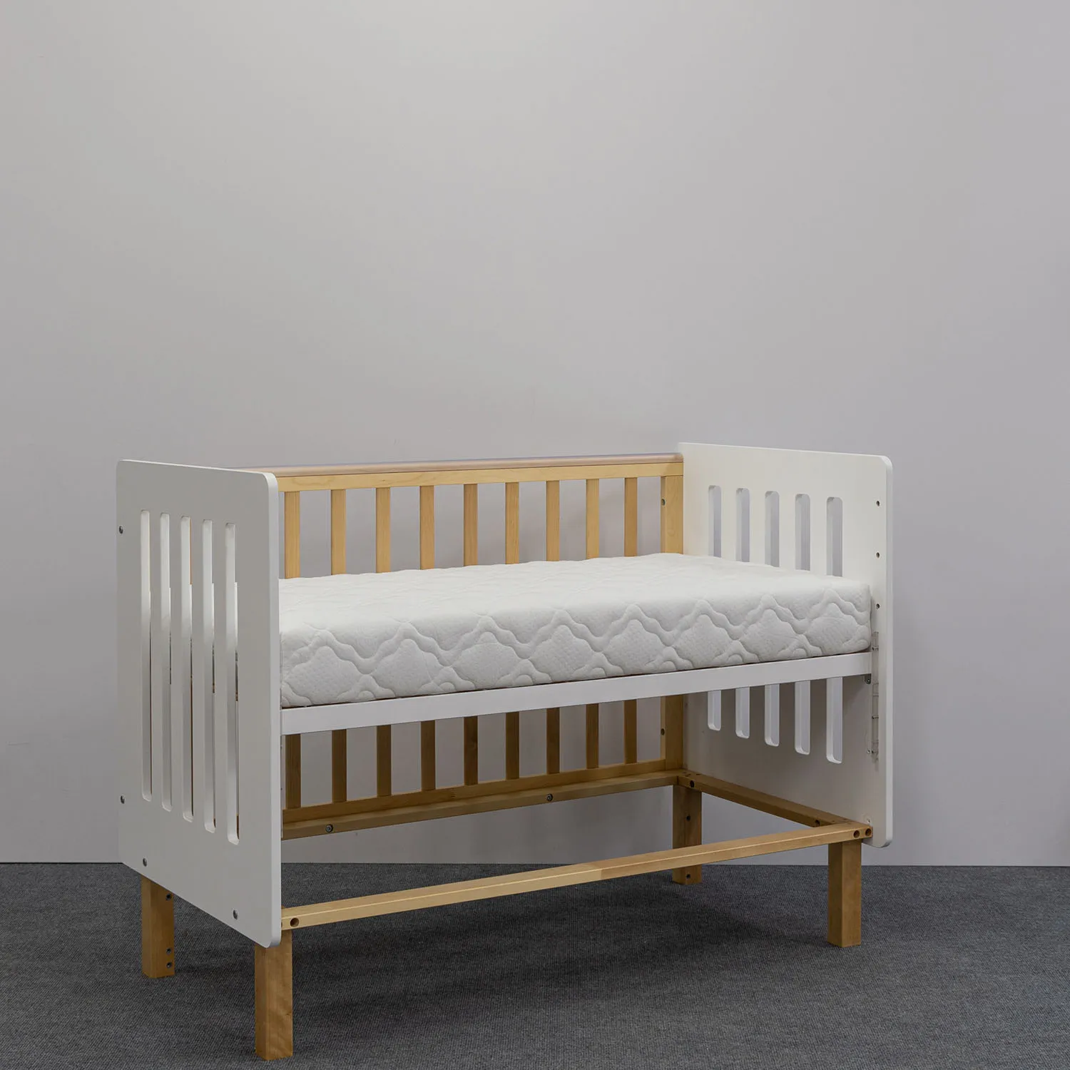 Кроватка Mari — это многофункциональная кроватка без острых углов, которая станет безопасным и уютным местом для сна и игр вашего малыша. Съемная передняя стенка фиксируется по высоте и дает возможность трансформировать кроватку в приставную. Дно кроватки устанавливается в 3-х положениях, что позволяет обеспечить безопасность для малыша и удобство в использовании. Размер спального места 120х60 см.