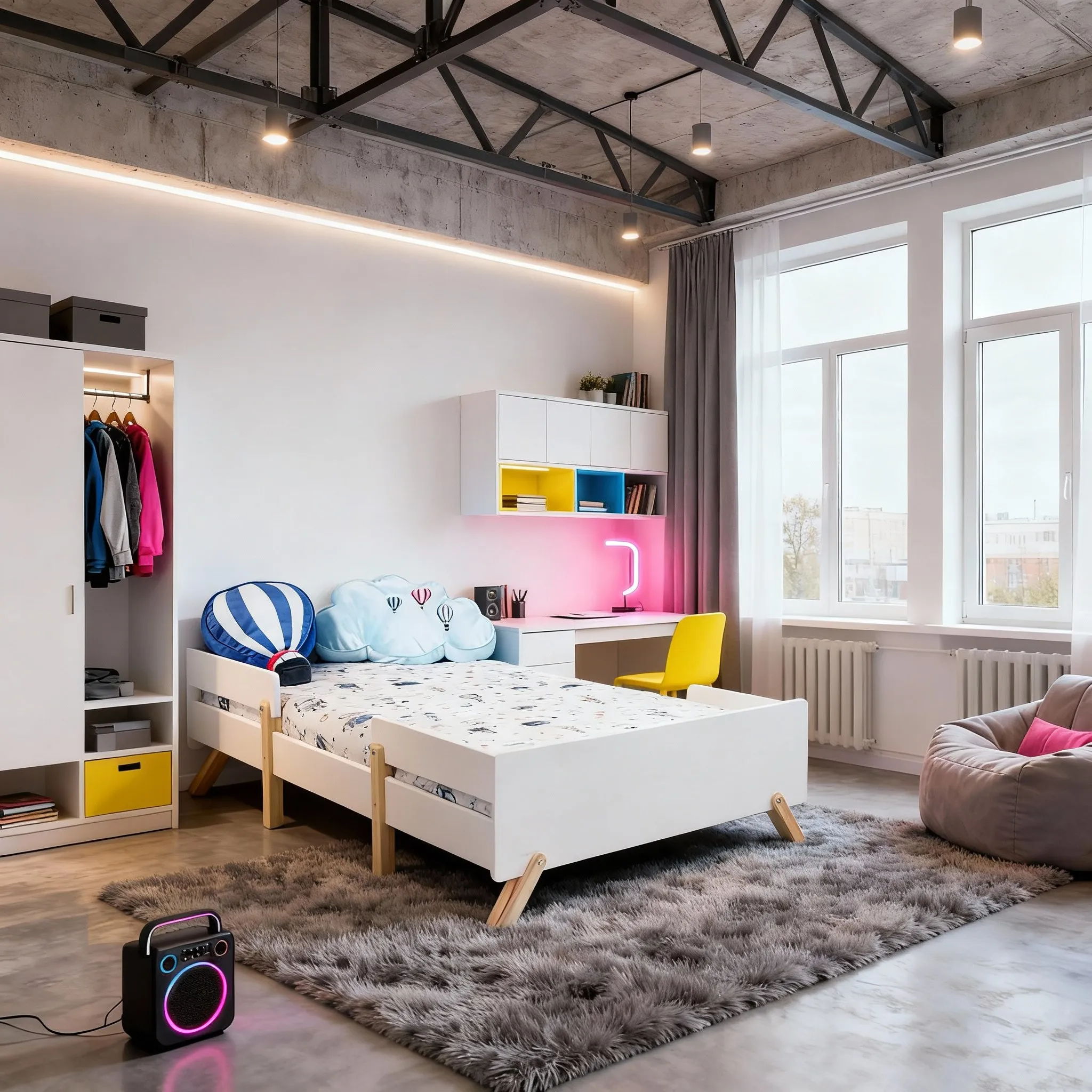 - Расстояние от пола до нижнего края кровати 13 см: удобно для уборки посредством робота-пылесоса