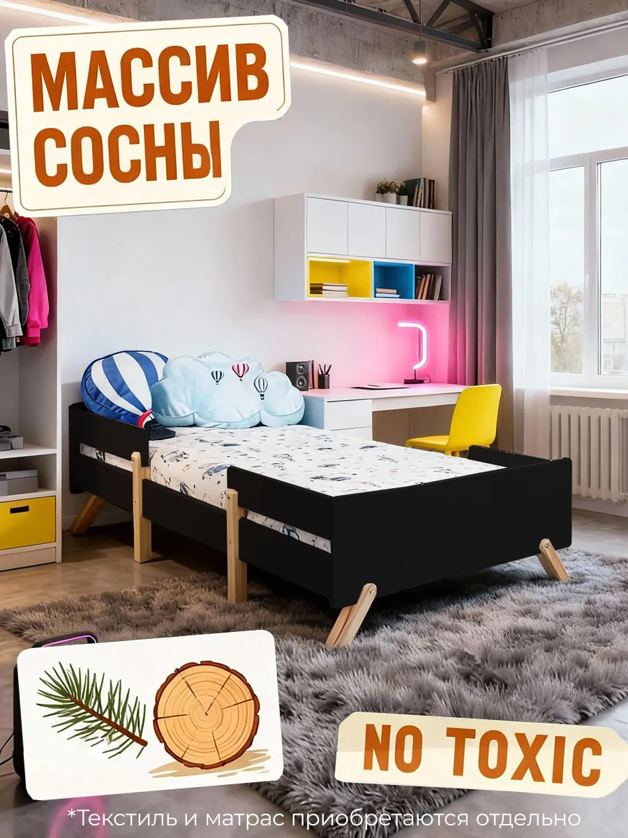 Стильная подростковая кроватка Lazurit by Bambini сделана из экологичного и природного материала — массива сосны. Натуральное дерево не выделяет вредных запахов и испарений, имеет легкий аромат соснового леса, способствует крепкому и спокойному сну.