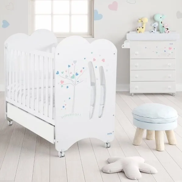Удивительно нежная комната Micuna Aura прекрасно подойдёт как для мальчика, так и для девочки. В основе оформления – неяркий, но очень вдохновляющий декор в виде сказочного деревца в пастельных оттенках розового, бирюзового и голубого. Ассиметричная спинка кровати подчёркивает оригинальность коллекции.