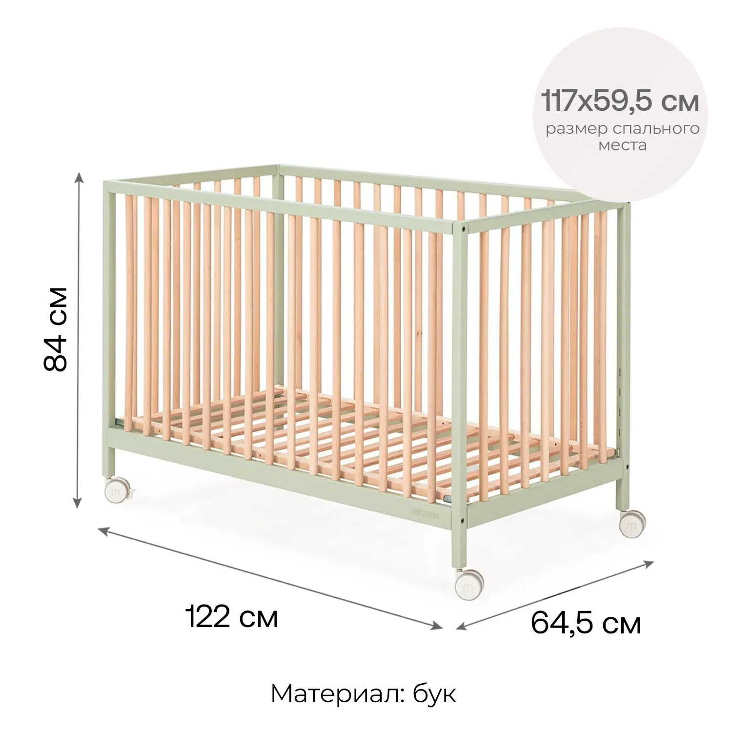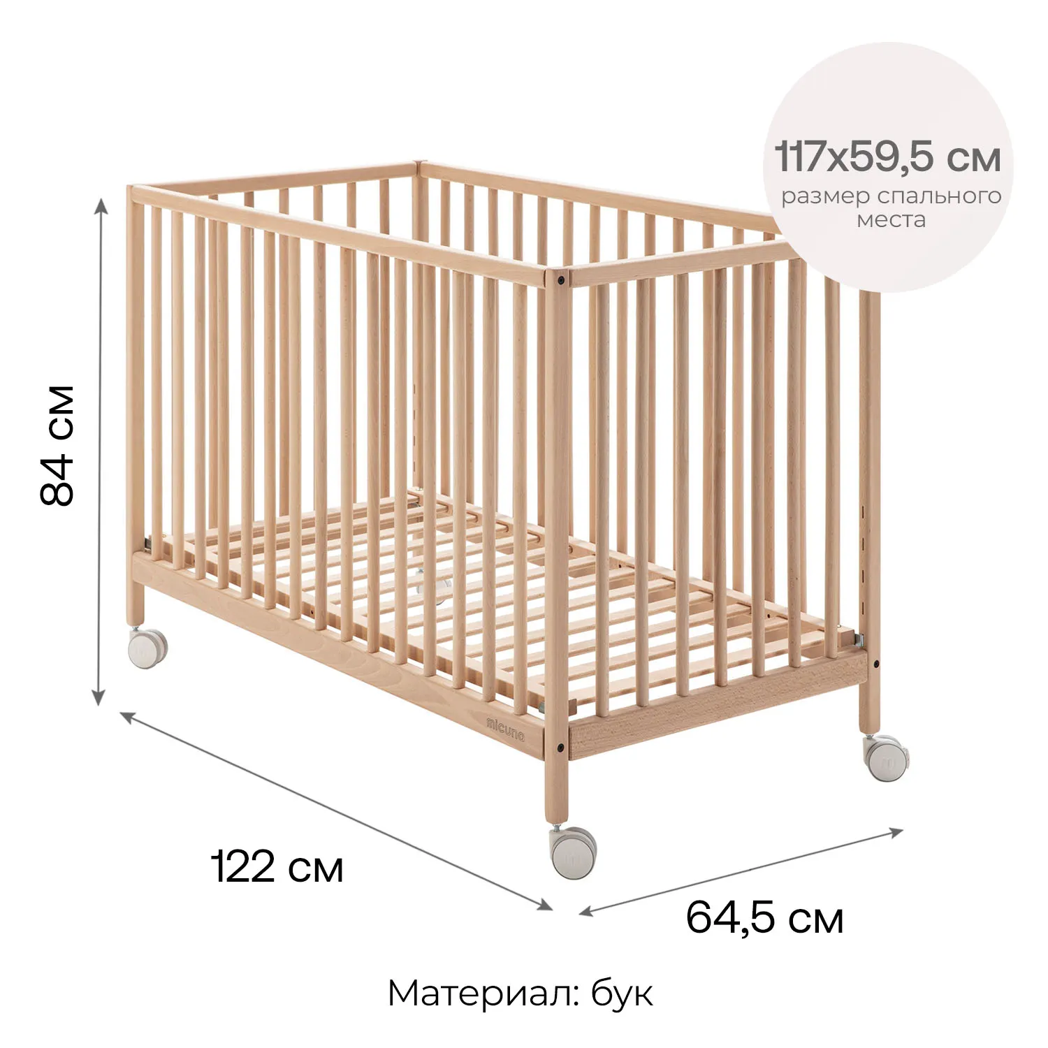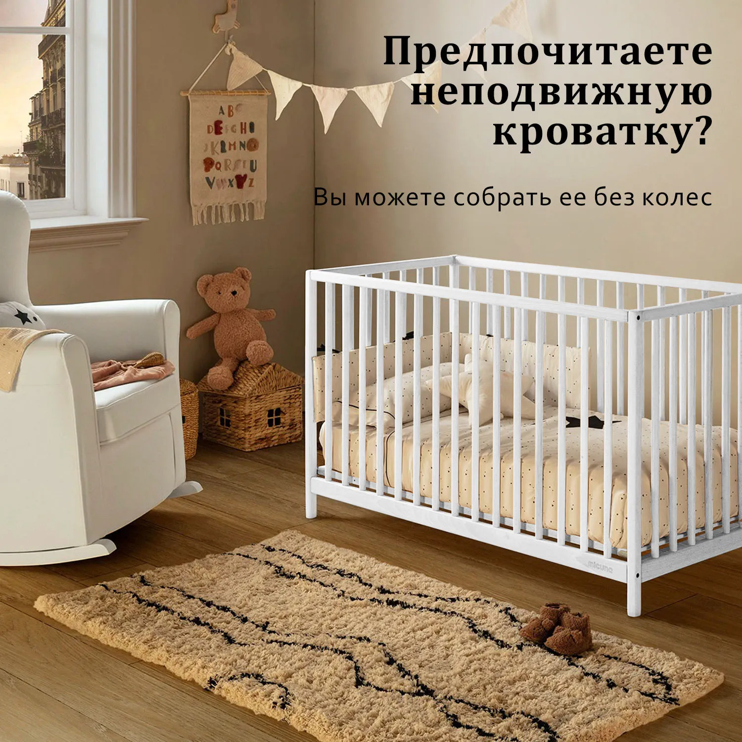 - Для кроватки подходят матрасы Micuna 117х57 см и Fiorellino 117х59 см и постельные принадлежности 120x60 см