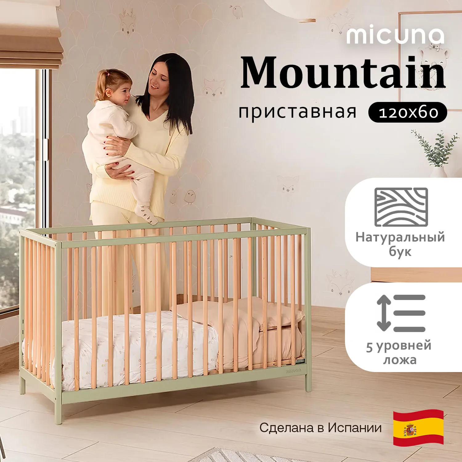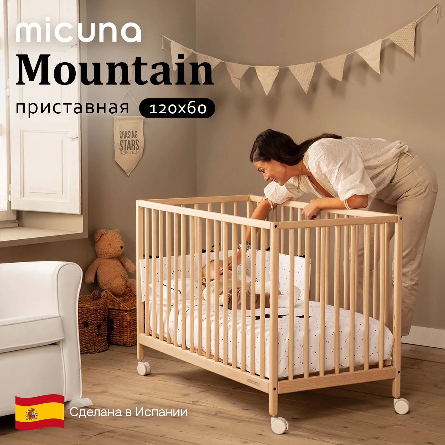Приставная кроватка Micuna Mountain подойдет с рождения примерно до 4 лет, протестирована с максимальной нагрузкой до 20 кг. Срок использования индивидуален и зависит от конкретного малыша. Ложе кроватки регулируется в 5 положениях (из них 2 для совместного сна), подстраиваясь под потребности семьи и рост малыша. Для грудничка рекомендуется самое высокое положение ложа — это позволяет маме беречь спину и сильно не наклоняться, когда она кладет малыша в кроватку. Для активных малышей, которые встают у опоры, положение должно быть самым низким.