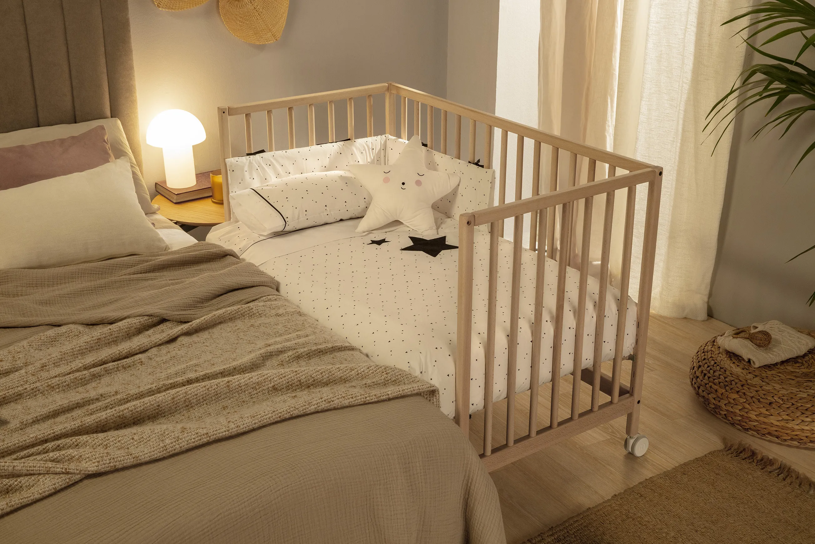 Модель предполагает функцию совместного сна, для которой необходимо приобрести дополнительную опцию CP-2007. С ее помощью вы можете безопасно зафиксировать детскую кроватку к родительской. Это разработка компании Micuna, которая обеспечит родителям и малышу комфортный совместный сон. Также для этого потребуется снять передний бортик.