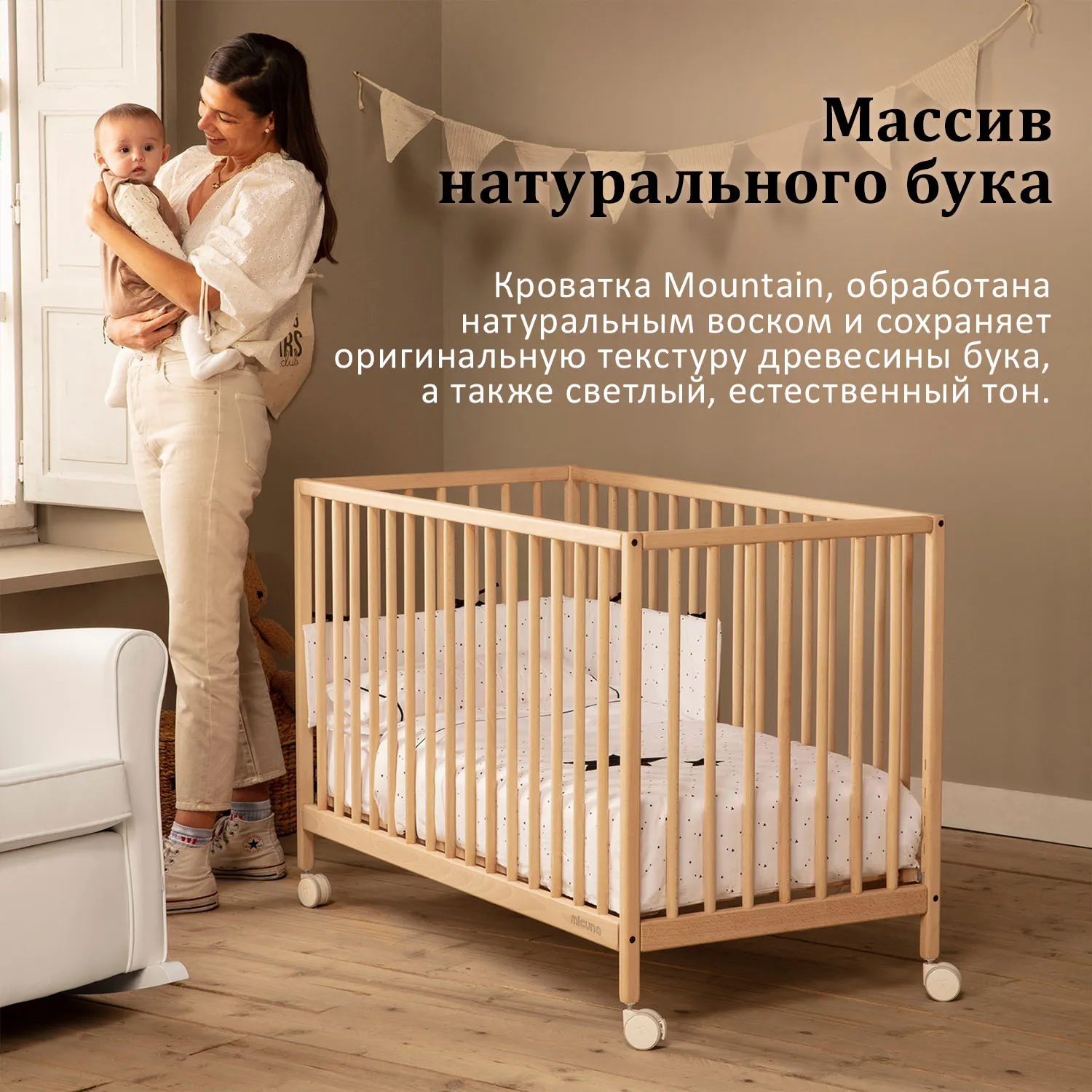 Детская кроватка Mountain отличается легким и изысканным дизайном, благодаря которому она идеально подходит для любой детской комнаты. Эта приставная кроватка отвечает современным тенденциям в интерьере, элегантно сочетая ламели разных цветов. Кроватка Mountain, отделанная натуральным воском, сохраняет оригинальную текстуру древесины бука, а также светлый, естественный тон.