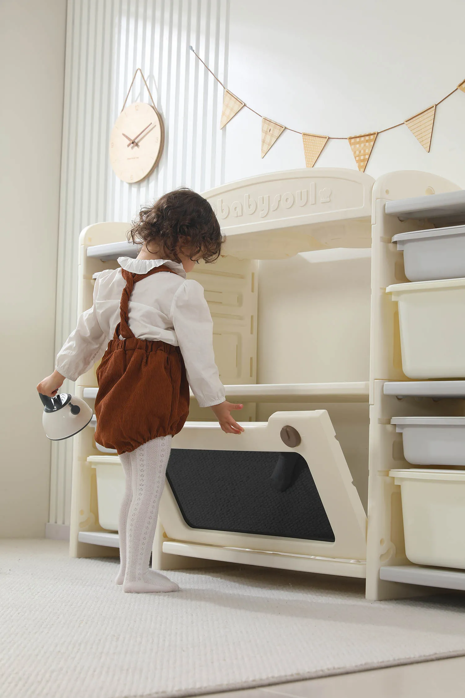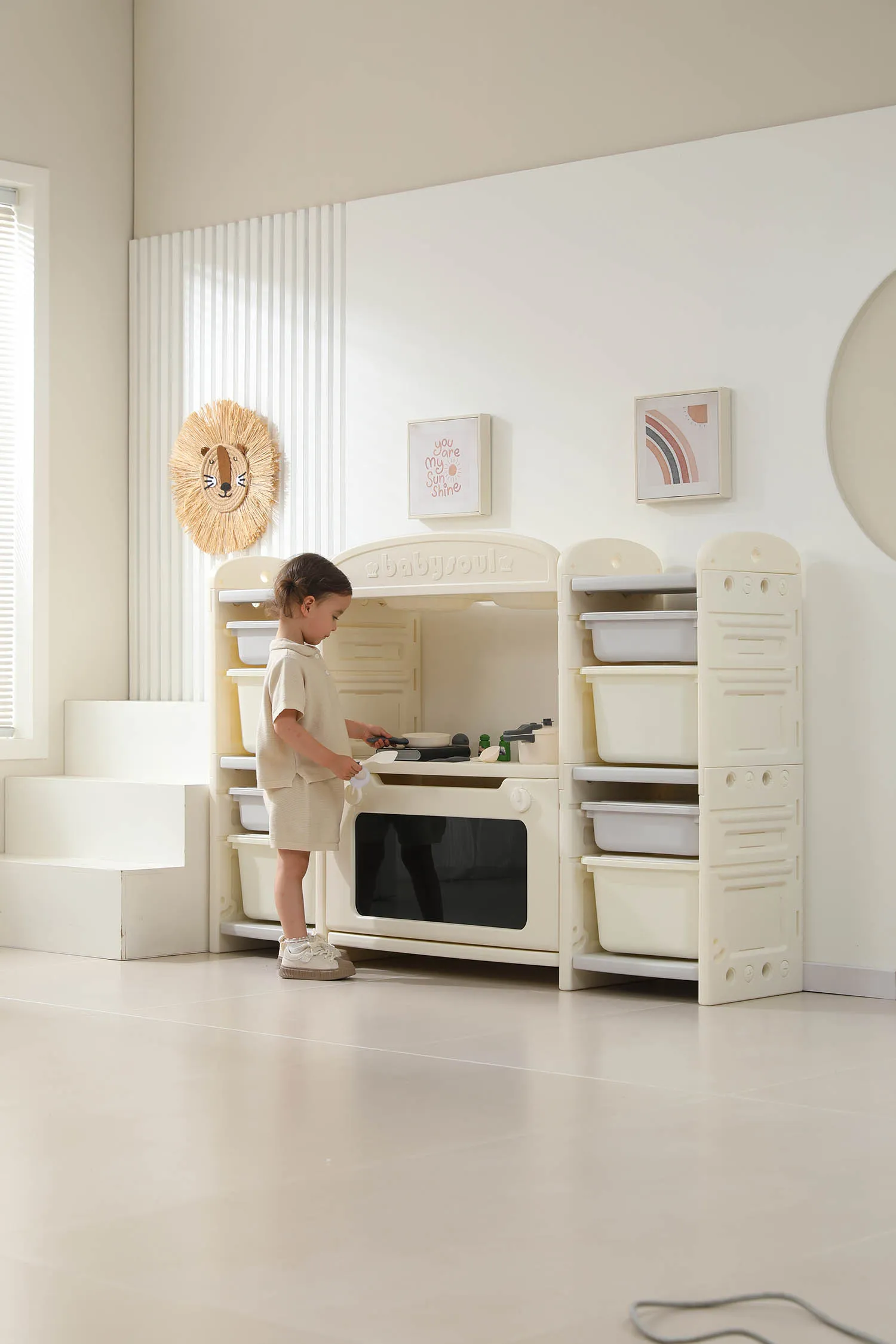 Развивающая игрушка кухня по системе Монтессори способствует развитию мелкой моторики, логического мышления и креативности. Ребенок сможет изучать основы приготовления пищи, комбинировать различные ингредиенты и даже разрабатывать свои собственные рецепты! В процессе игры малыш научится различать продукты, кухонные принадлежности, столовые приборы и поймет, как работает плита и духовка. А вместительные ящики с крышками можно использовать для хранения посуды и продуктов из набора.
