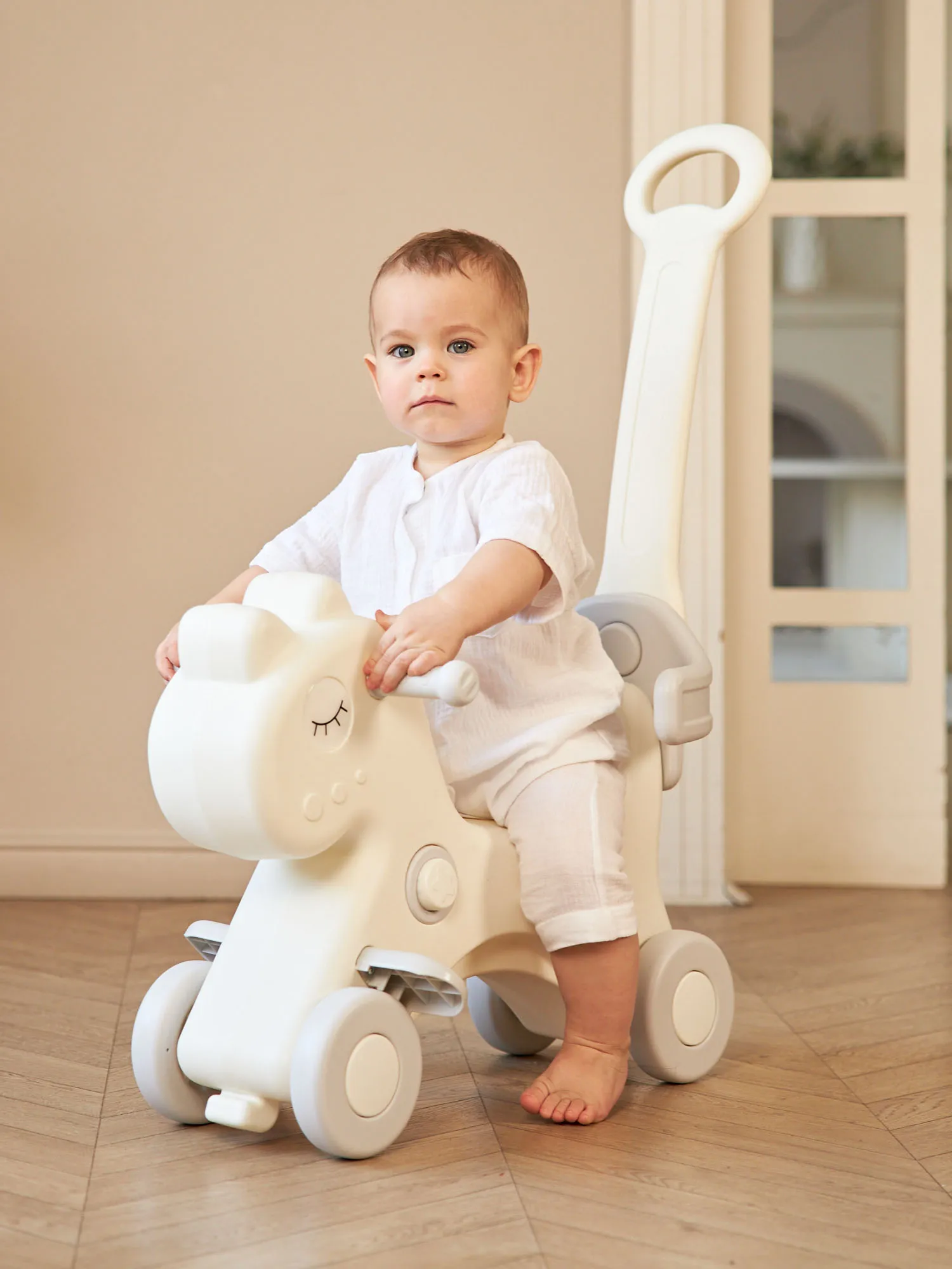 Лошадка-качалка-беговел Unix Kids — это отличное развлечение в сочетании с физическим развитием Вашего малыша! Лошадка толокар имеет удобные спинку-держатель и педали для безопасности маленьких наездников и длинную ручку, за которую можно малыша качать. Так же ручка дает родителям возможность катить лошадку в формате беговела, если ребенок взял ее на улицу, а потом устал, накатавшись!