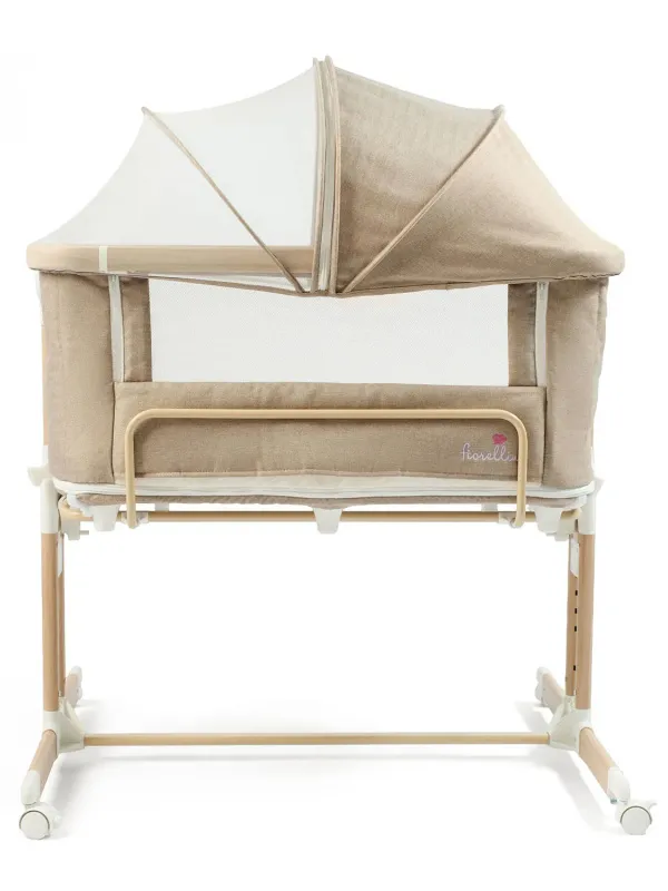 Многофункциональная приставная люлька Fiorellino нежного бежевого цвета станет идеальным и уютным местом для малыша с рождения. Эта колыбель обеспечит спокойный сон новорожденного. Благодаря сетчатым бортикам вы сможете наблюдать за малышом, а колесики позволят легко перемещать люльку из комнаты в комнату.