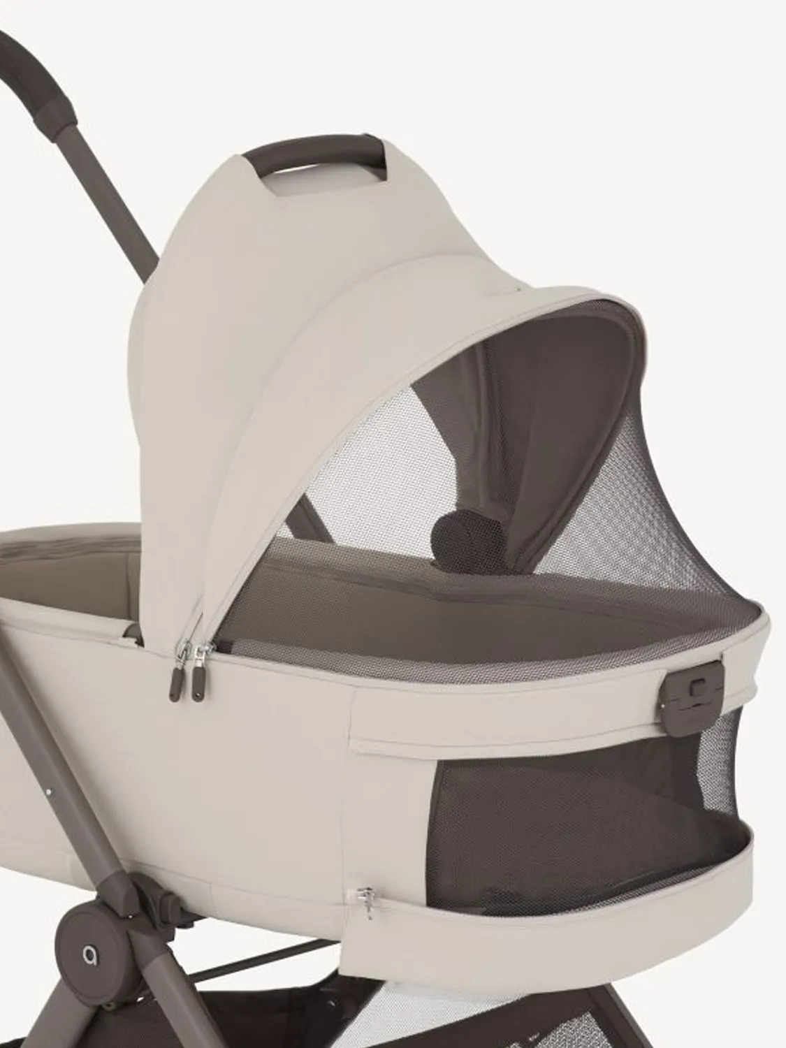В конфигурации с люлькой коляска Air-Q создаёт уютное и безопасное пространство для малыша с первых дней жизни. Люлька разработана для комфортных путешествий и складывается вместе с коляской в компактный размер ручной клади.