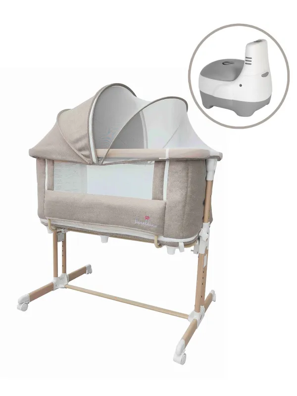 Многофункциональная приставная люлька Fiorellino нежного бежевого цвета станет идеальным и уютным местом для малыша с рождения. Эта колыбель обеспечит спокойный сон новорожденного. Благодаря сетчатым бортикам вы сможете наблюдать за малышом, а колесики позволят легко перемещать люльку из комнаты в комнату.