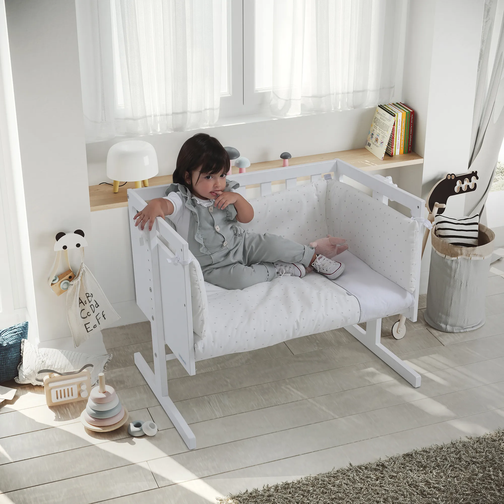 Первые дни жизни ребенка очень важны. Используя You&Me, вы можете спать вместе со своим ребенком. Включает систему крепления к кровати. Также в комплекте есть входит матрасик с системой против удушья. Чехол матрасика: эластичная ткань 100% полиэстер – эластичная, мягкая и дышащая ткань, облегчающая движения ребенка во время сна. Наполнитель: HR Aquapur – высокоэластичный пенополиуретан, перфорированный пенополиуретан для улучшения циркуляции воздуха и предотвращения скопления влаги. Средняя воздухопроницаемость. Анти-клещ.