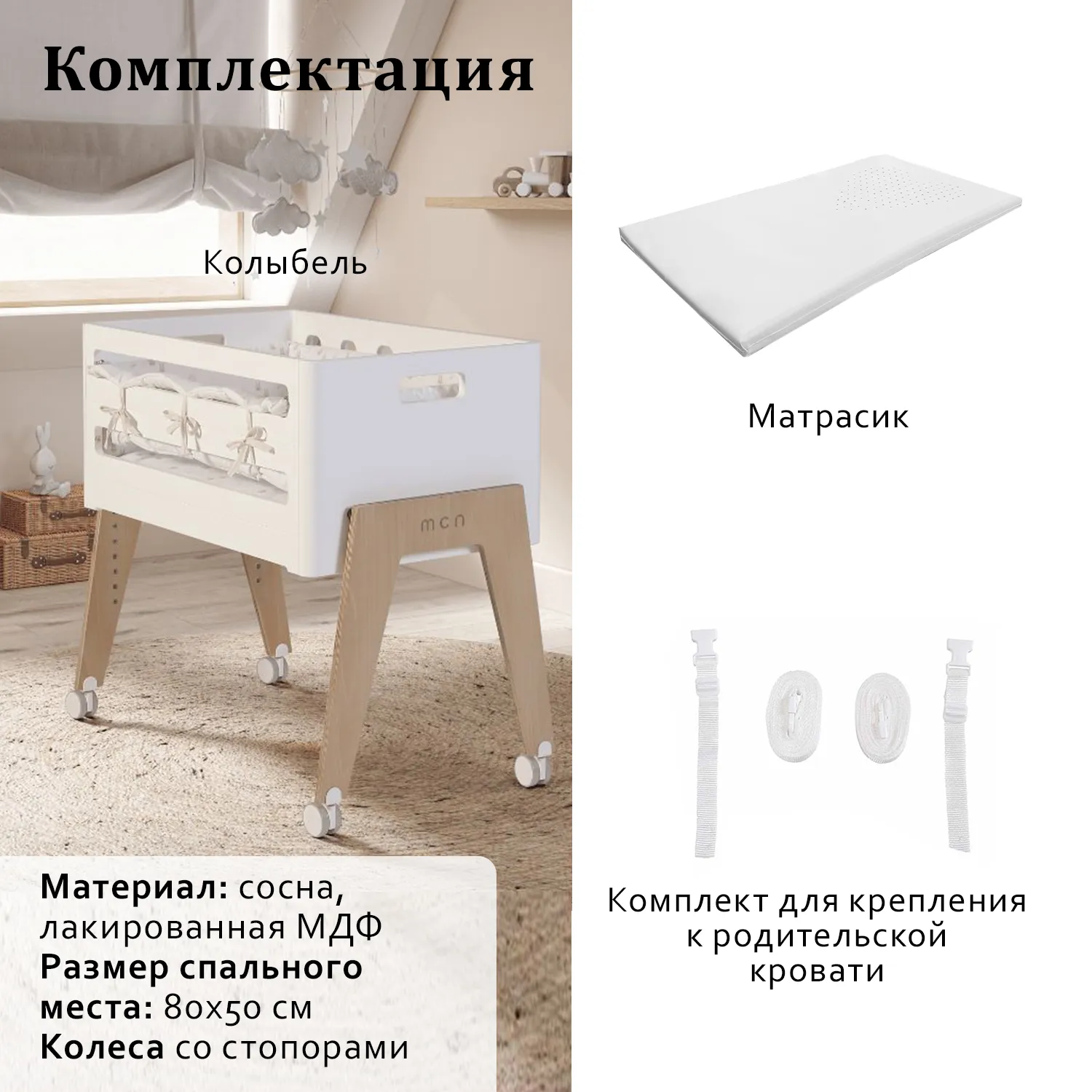 - В комплекте матрасик и ремни для крепления к родительской кровати