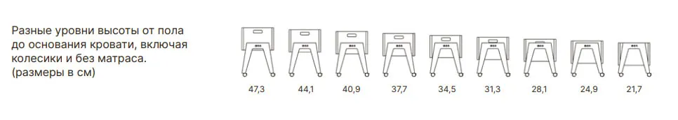 - Высота комплекта для совместного сна: 47.2 / 44.1 / 40.9 / 37.7 / 34.5 / 31.3 / 28.1 / 24.9 / 21.7 см