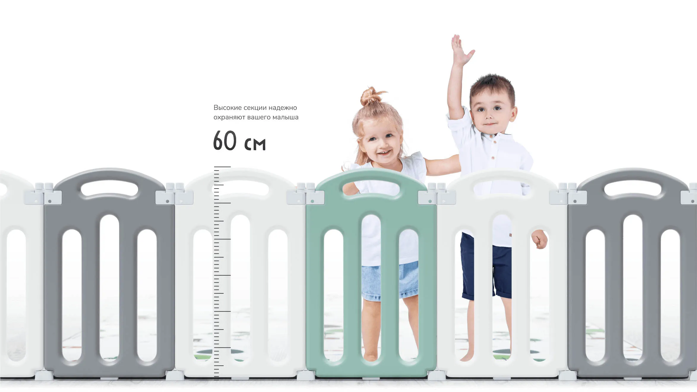 - Высокие секции 60 см: надежно охраняют малыша, и вам лучше его видно