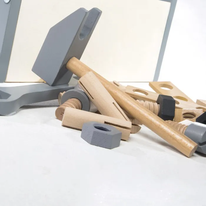 Все используемые материалы протестированы на наличие вредных веществ и сертифицированы. Кроме того, набор для верстака имеет знак качества EPH Института технологии дерева. Лак, используемый для обработки игровых инструментов, устойчив к влаге и придает им гладкость. Все поверхности можно протирать.
