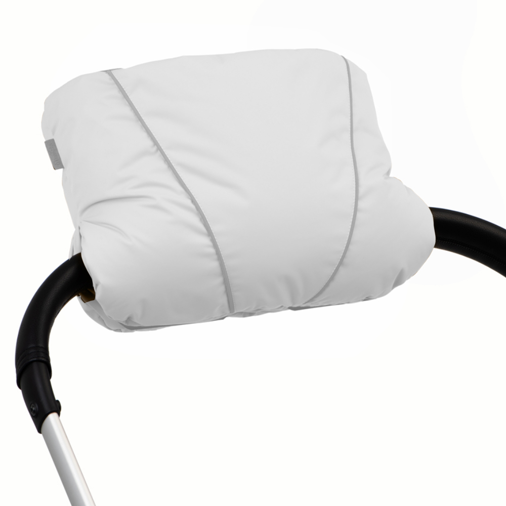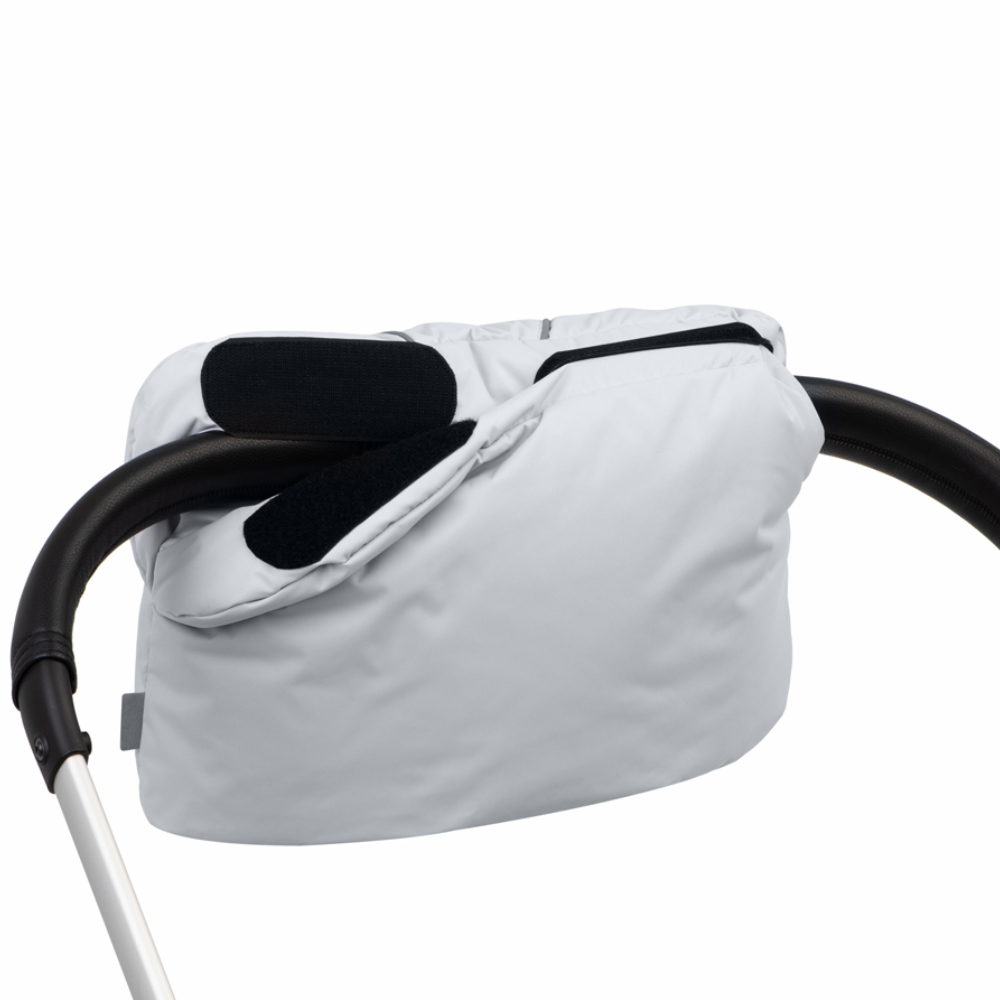 - Муфта фиксируется на поручне коляски с помощью липучек — вы не соприкасаетесь с холодным поручнем.