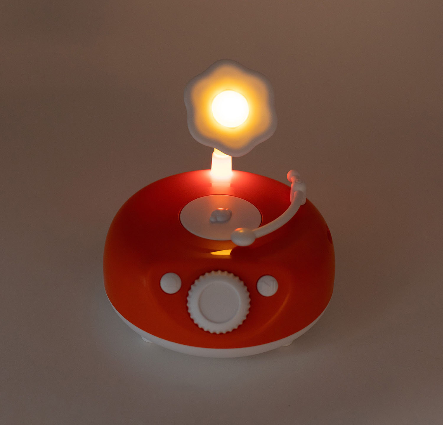 Мягкий свет превращает граммофон в ночник для комфортного прослушивания сказок перед сном.