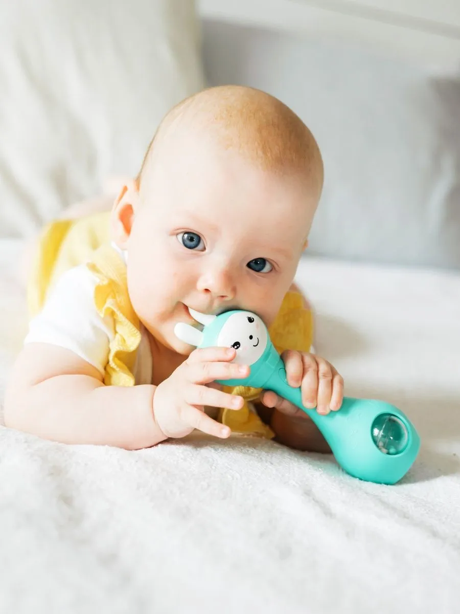 Alilo S1 — зайка карапуз — погремушка и прорезыватель! С ним можно играть как с обычной погремушкой, а можно включить и услышать много разных звуков, весёлых мелодий или сладко поспать под спокойную музыку и белый шум. Знает 9 звуков разных погремушек, его необходимо потрясти, чтобы услышать новый звук. Игра на барабанах, пианино и маракасах, а так же еще 15 различных весёлых мелодий!