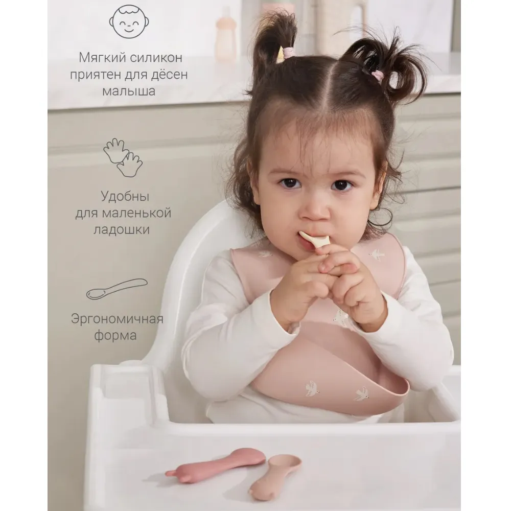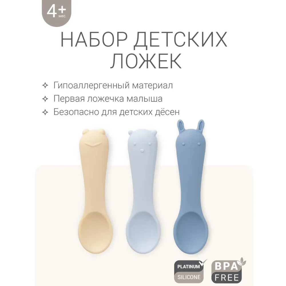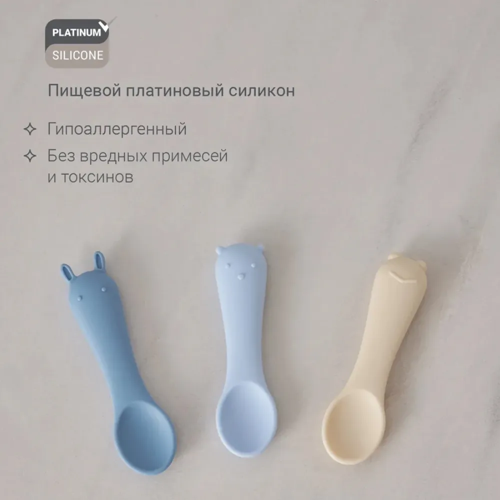 Маленькие ложечки из гипоаллергенного пищевого силикона для первого знакомства ребёнка со столовыми приборами. Они мягкие и гибкие, ребёнок может сколько угодно грызть ложечки, не травмируя нёбо и дёсны.
