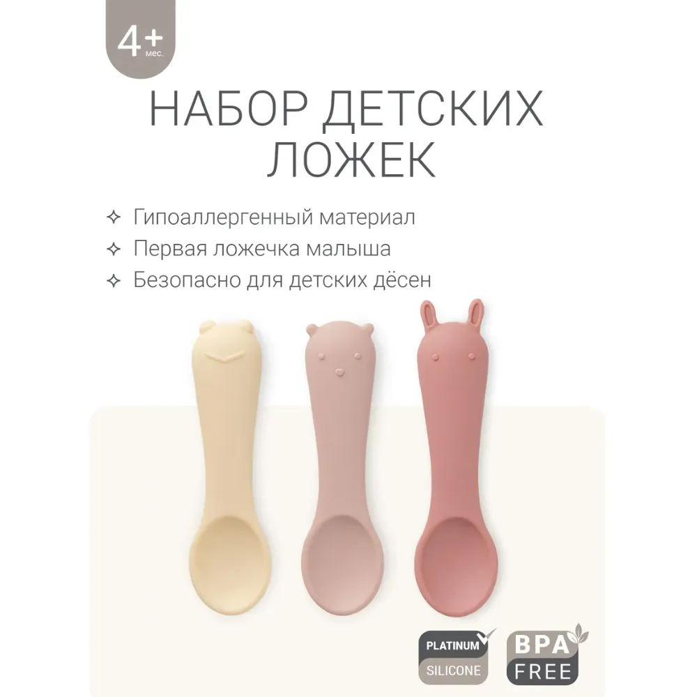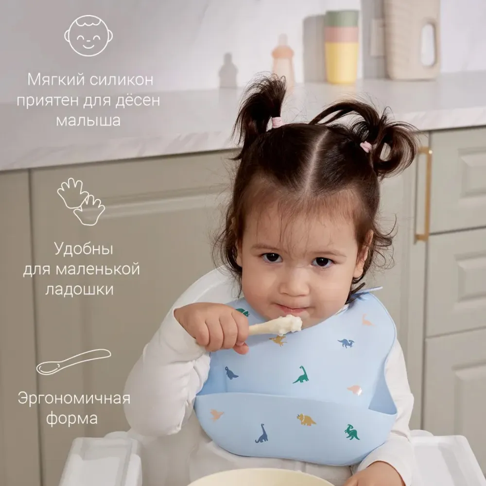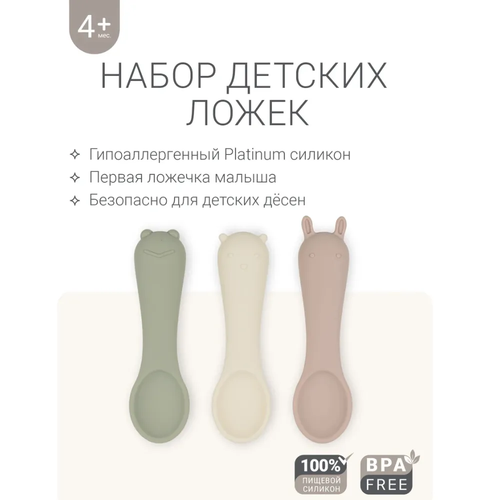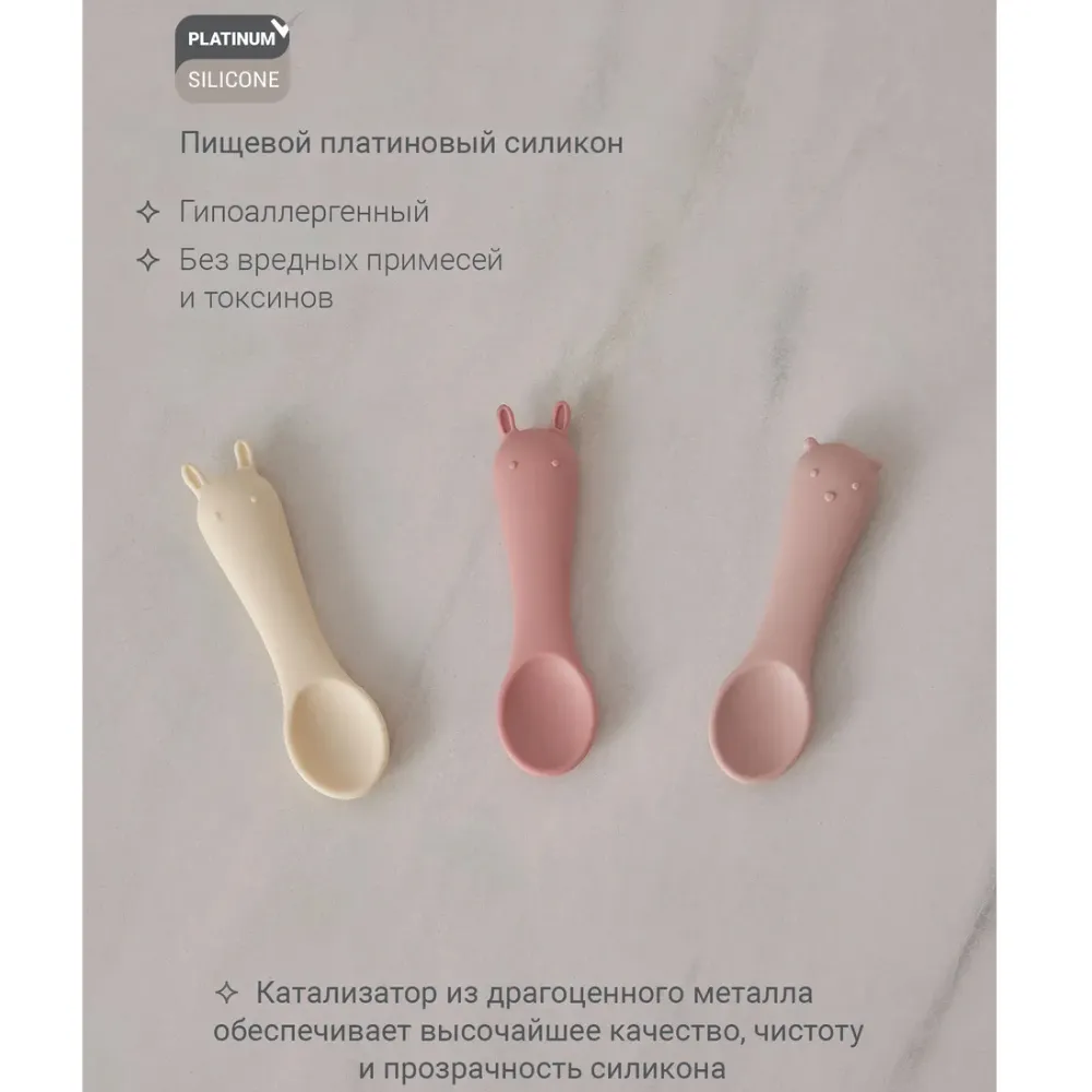 Маленькие ложечки из гипоаллергенного пищевого силикона для первого знакомства ребёнка со столовыми приборами. Они мягкие и гибкие, ребёнок может сколько угодно грызть ложечки, не травмируя нёбо и дёсны.