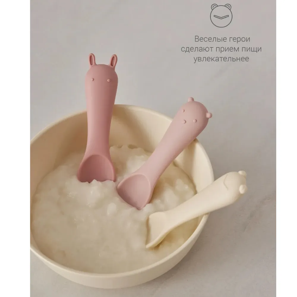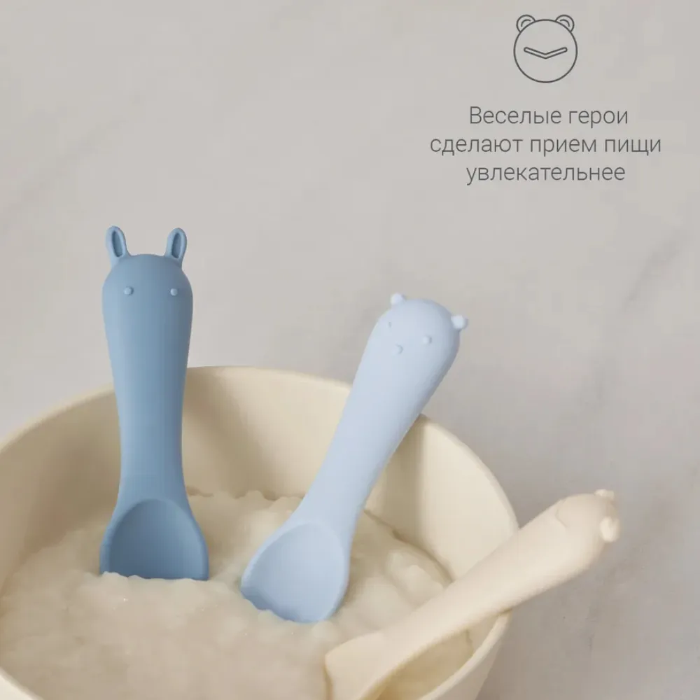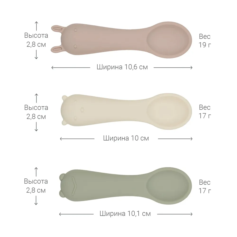 Оригинальный дизайн в форме забавных зверей привносит элемент игры в ежедневное кормление. В наборе — три ложки в трёх разных оттенках. Ложки гармонично сочетаются со всей посудой бренда по цветам и минималистичному дизайну.