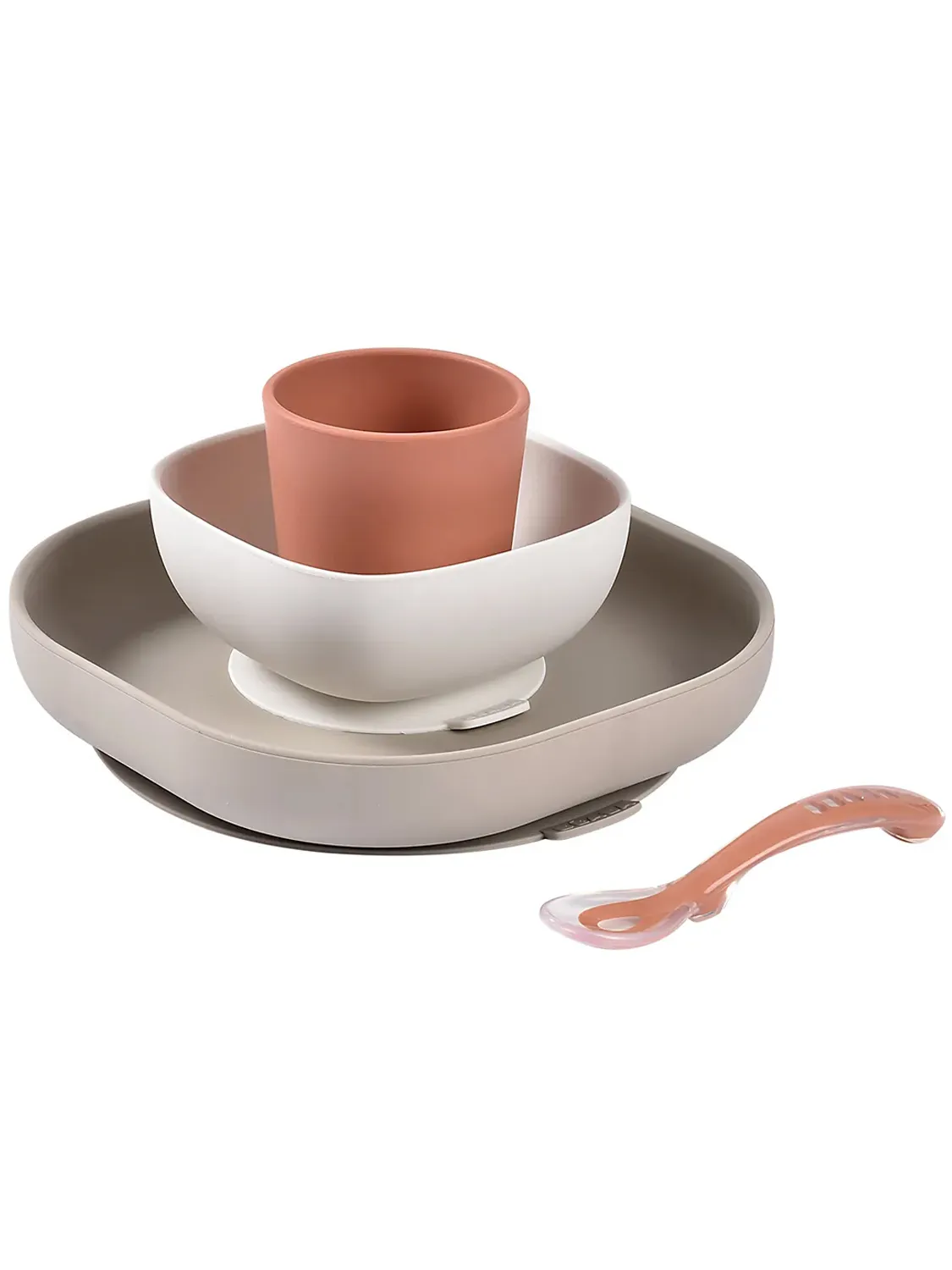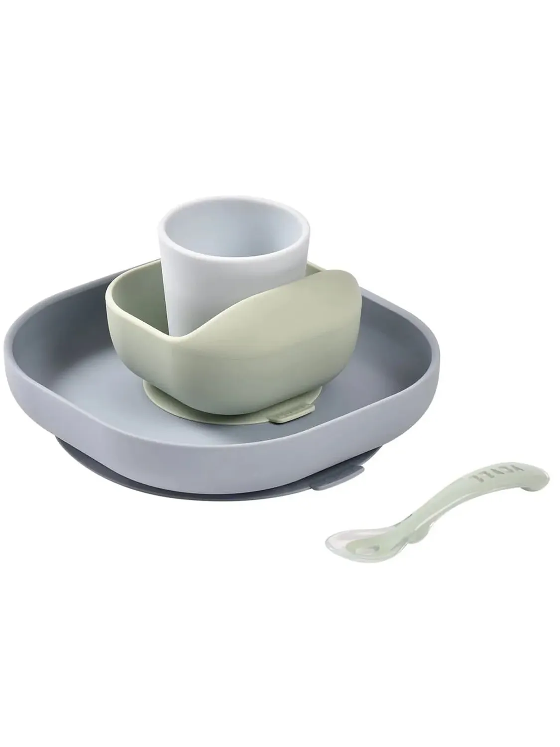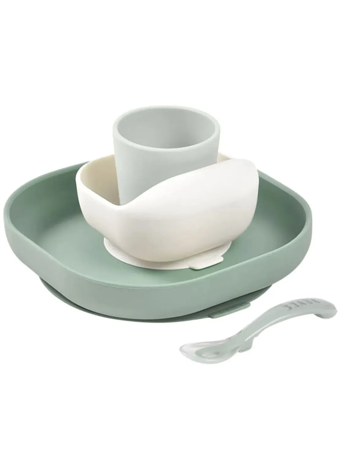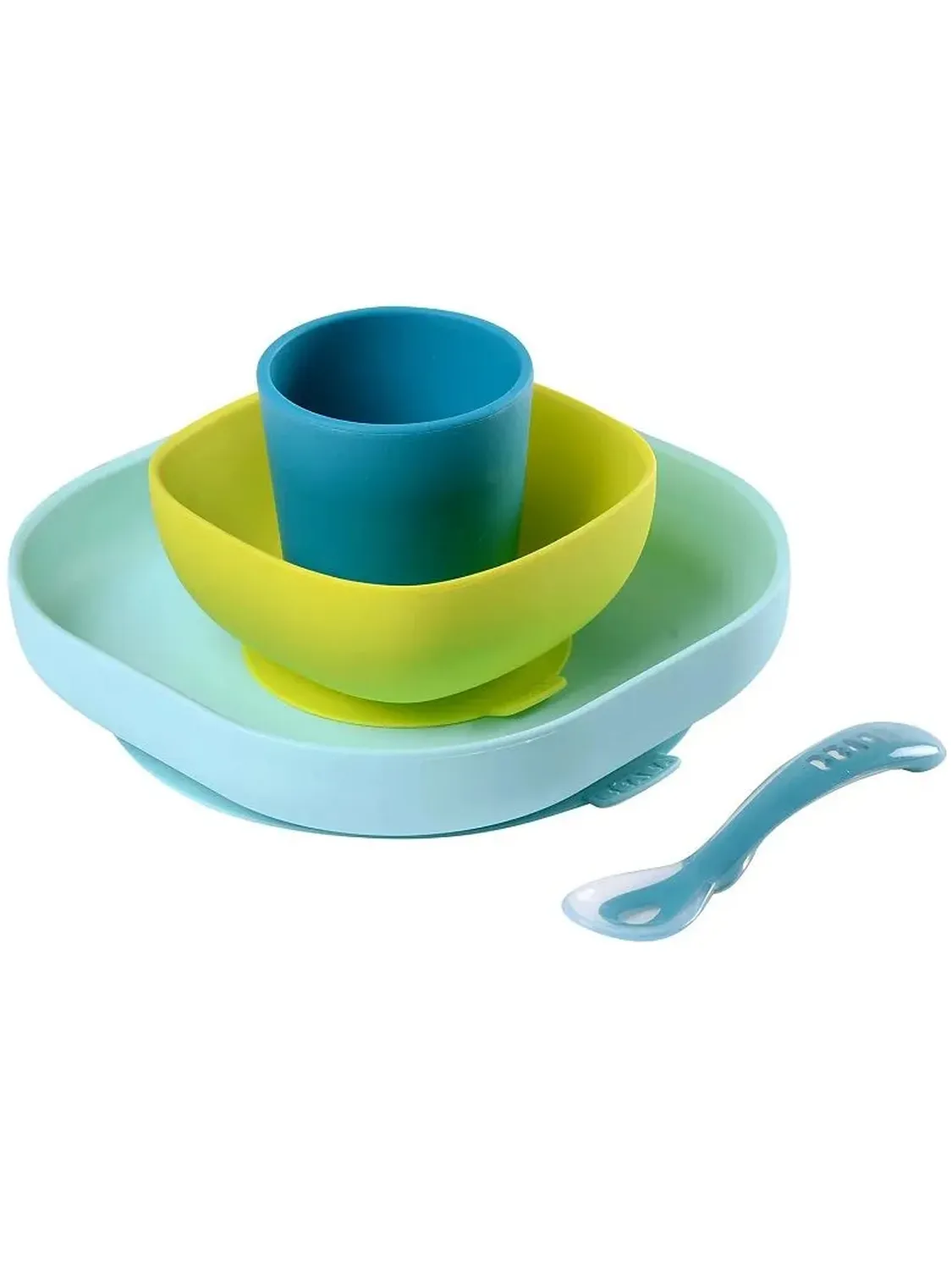 Набор посуды Beaba: 2 тарелки, стакан, ложка, силикон