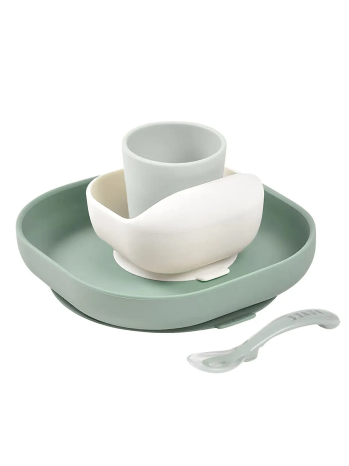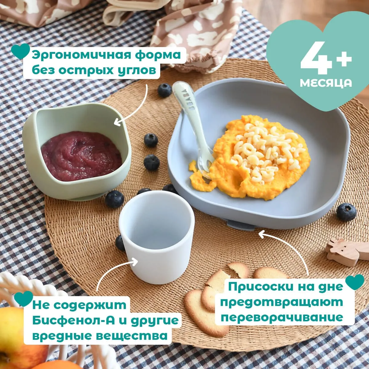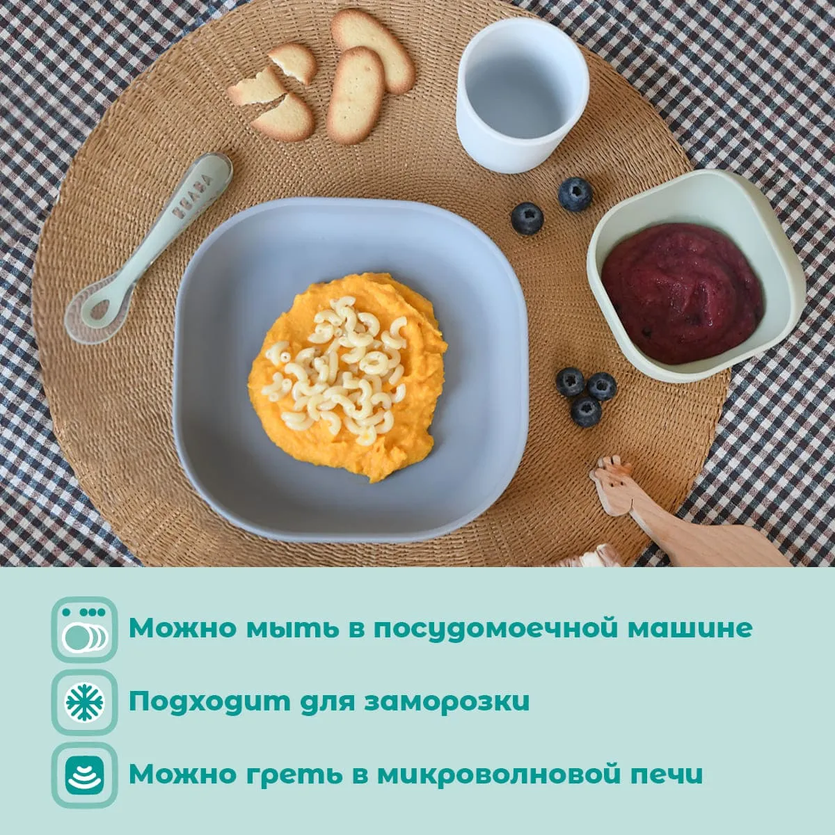 Набор посуды Beaba: 2 тарелки, стакан, ложка, силикон