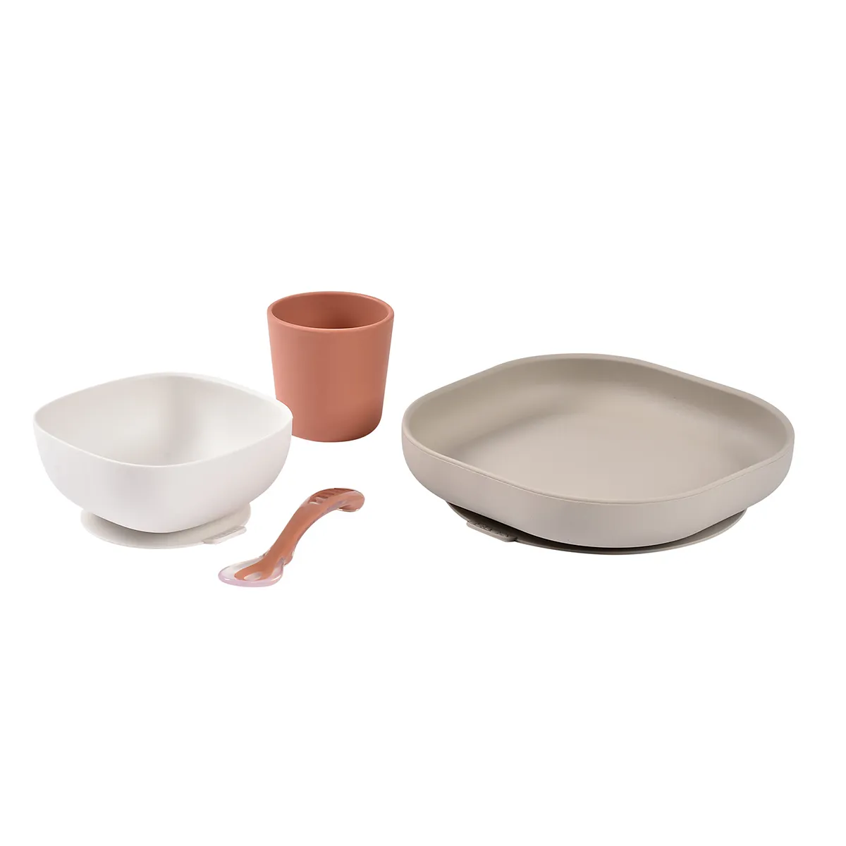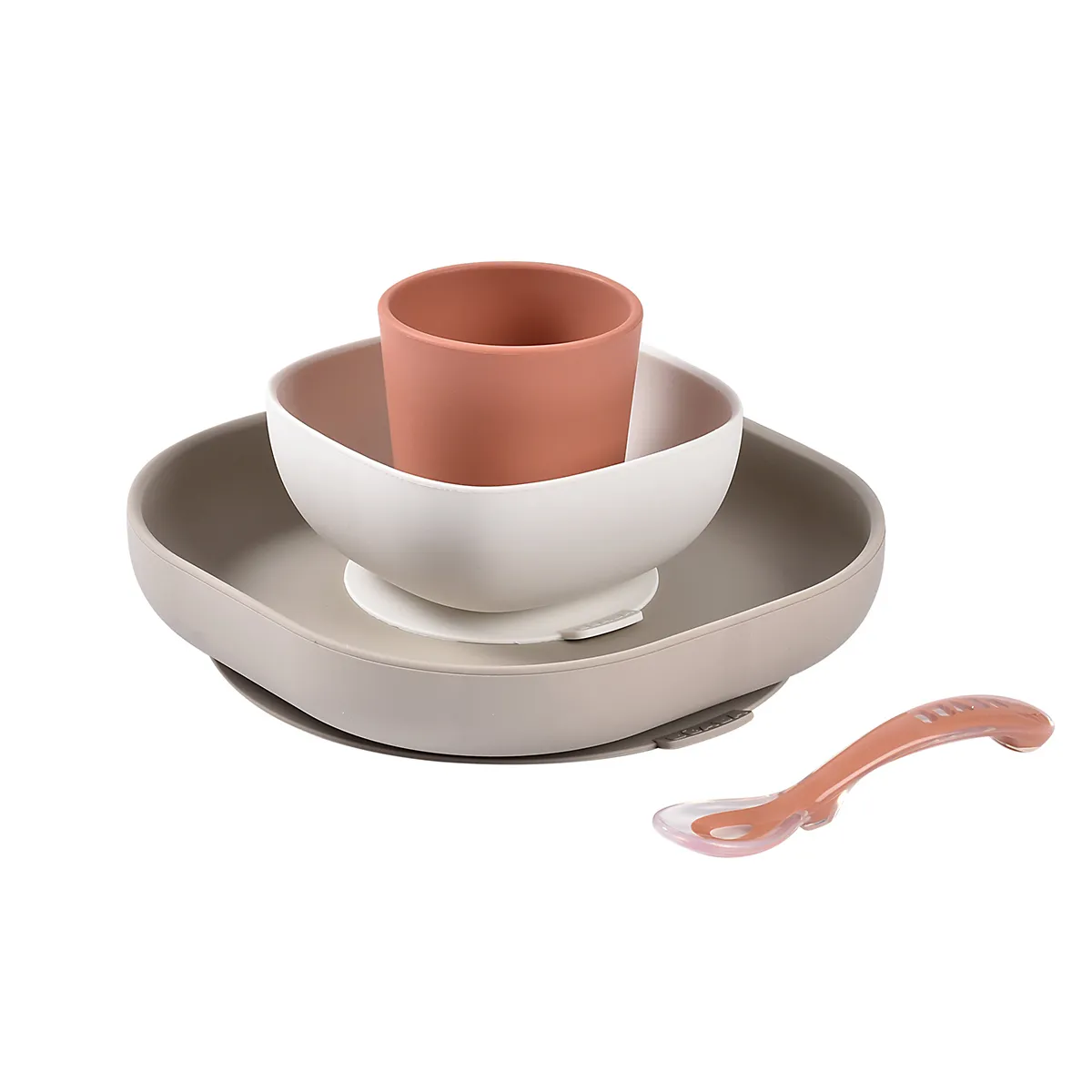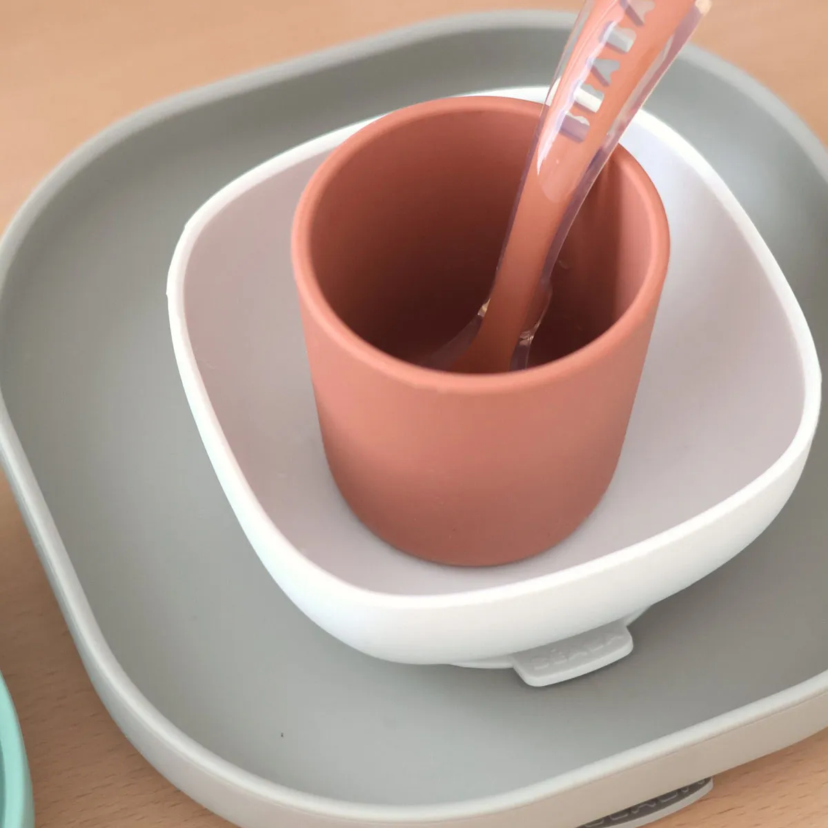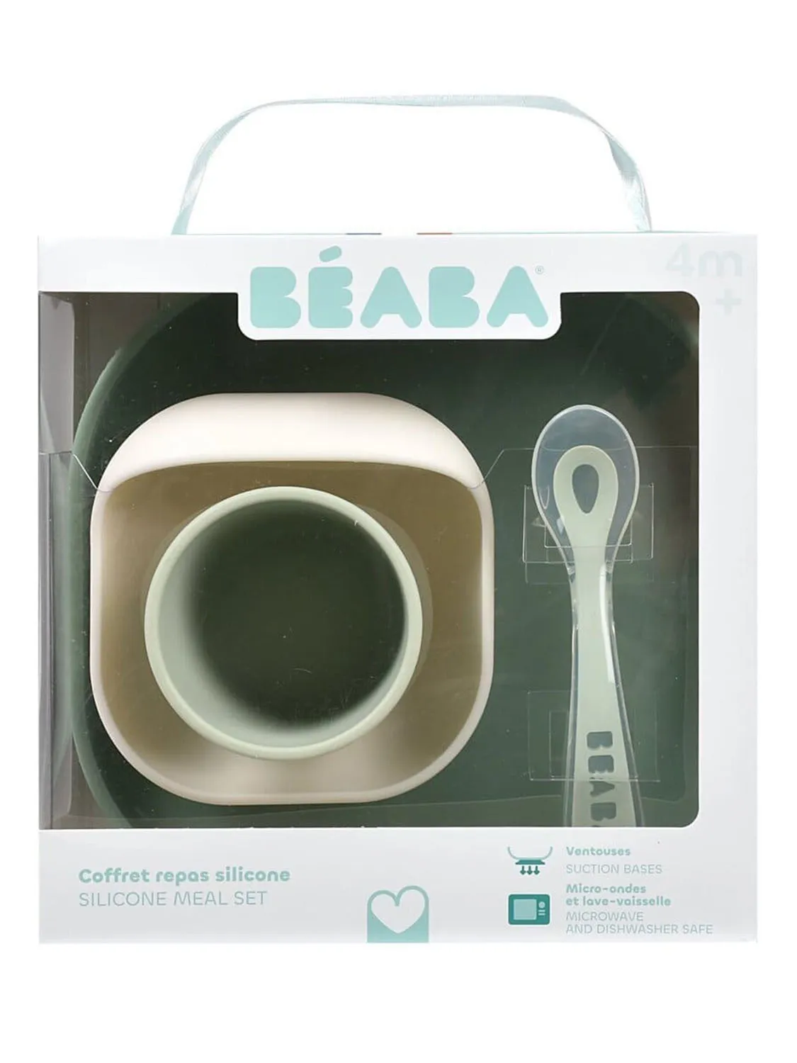 Набор посуды Beaba: 2 тарелки, стакан, ложка, силикон