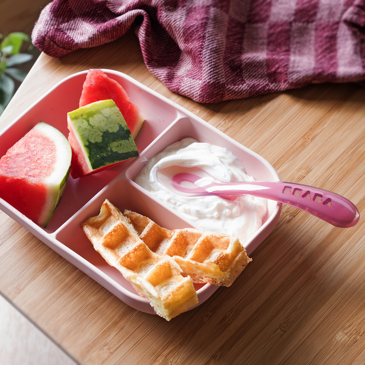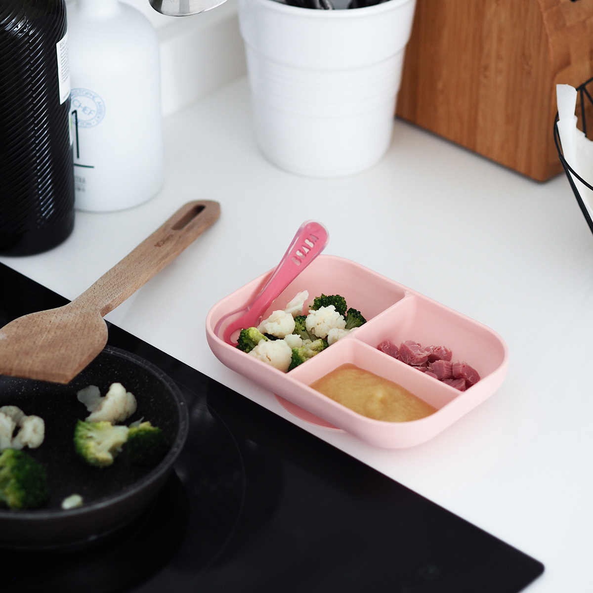 Детская силиконовая тарелка с тремя отсеками поможет сохранить текстуры и вкус разных блюд при их одновременной подаче. А еще такую тарелку удобно использовать, чтобы контролировать реакцию ребенка на отдельные продукты в начале прикорма — чтобы оценить вкусовые предпочтения и отследить возможную аллергическую реакцию.