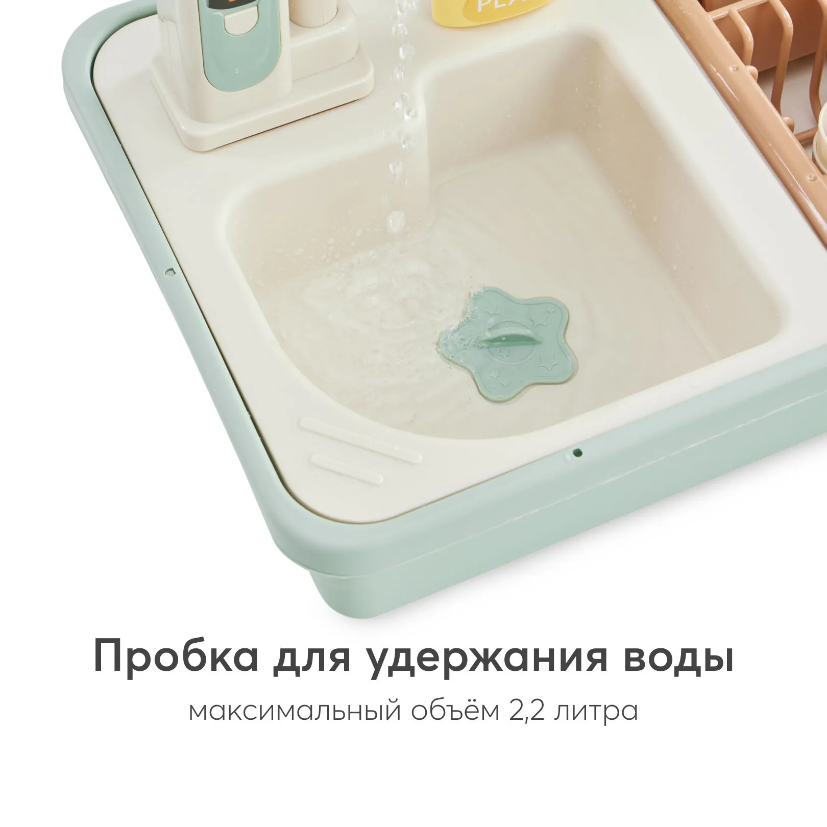 Игры с водой расслабляют ребёнка и повышают настроение, развивают мелкую моторику, память, внимание. Игрушечная мойка даст возможность плескаться в воде, представлять себя взрослым и не терять интерес к домашним делам. Вода в игрушке циркулирует. Наполните мойку водой, включите кран – вода начнёт вытекать через него обратно в мойку, а затем снова попадёт в кран. Играть можно бесконечно. Приятные эмоции обеспечены.