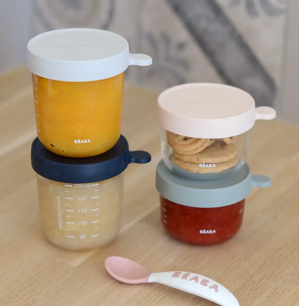 Набор из 4-х стеклянных контейнеров Beaba для хранения с крышкой 150/250 мл