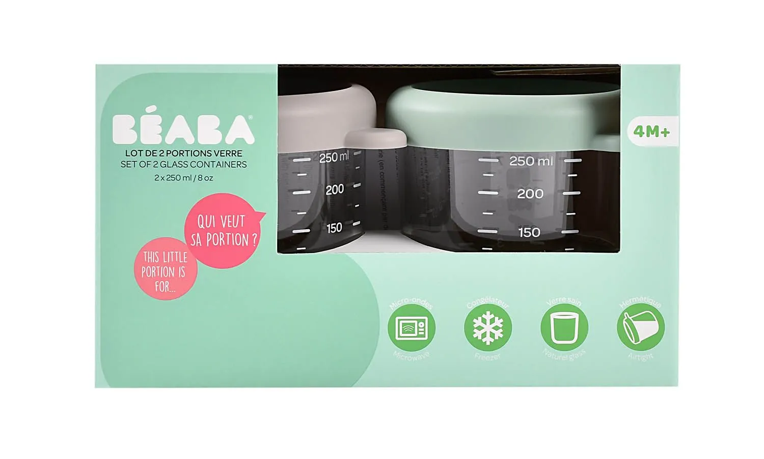 Набор контейнеров Beaba стеклянных, с крышкой (2 шт) 250 мл, для хранения продуктов