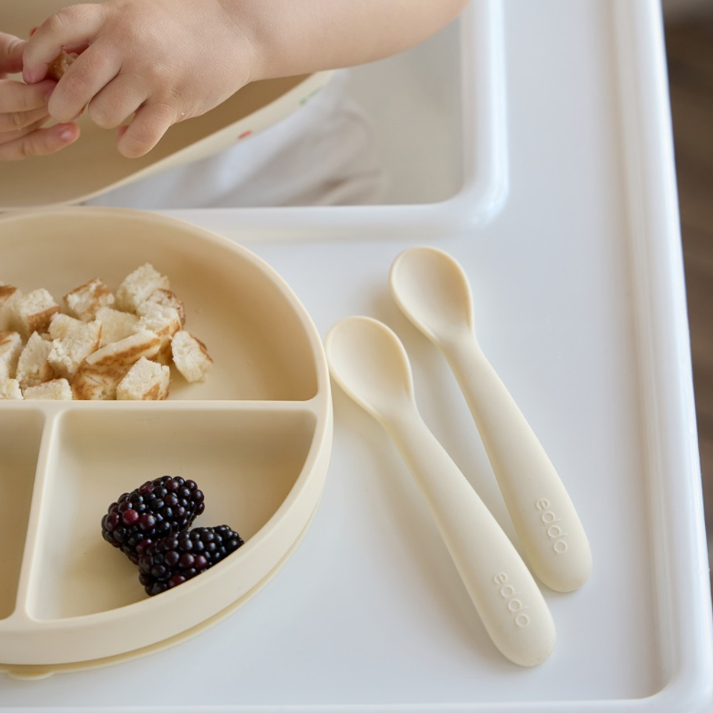 Набор силиконовых ложек с мягким черпачком и эргономичной ручкой с нейлоновым стержнем внутри для комфортного кормления. Черпачок оптимального объёма 2 мл выполнен из 100% мягкого платинового силикона, полностью безопасного для дёсен малыша. Ложки легко моются в посудомоечной машине. Набор выполнен из платинового силикона пастельных оттенков — безопасного, практичного и приятного на ощупь.