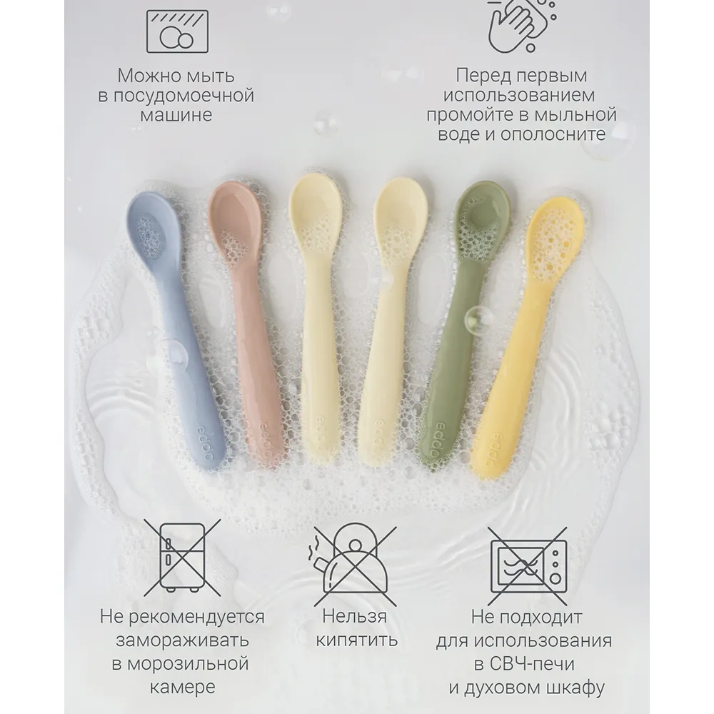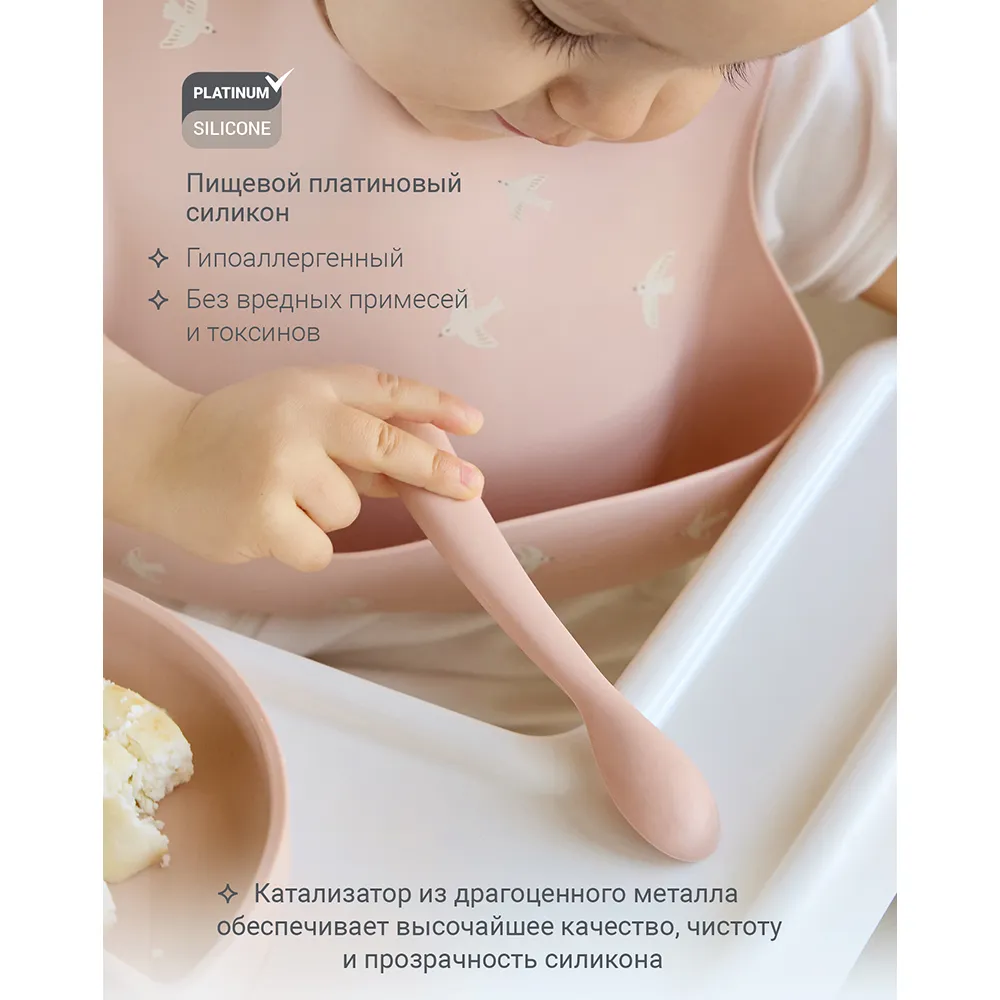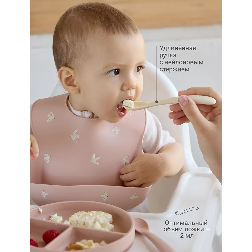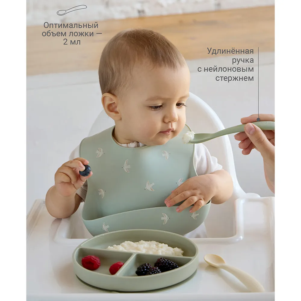 Набор силиконовых ложек с мягким черпачком и эргономичной ручкой с нейлоновым стержнем внутри для комфортного кормления. Черпачок оптимального объёма 2 мл выполнен из 100% мягкого платинового силикона, полностью безопасного для дёсен малыша. Ложки легко моются в посудомоечной машине. Набор выполнен из платинового силикона пастельных оттенков — безопасного, практичного и приятного на ощупь.