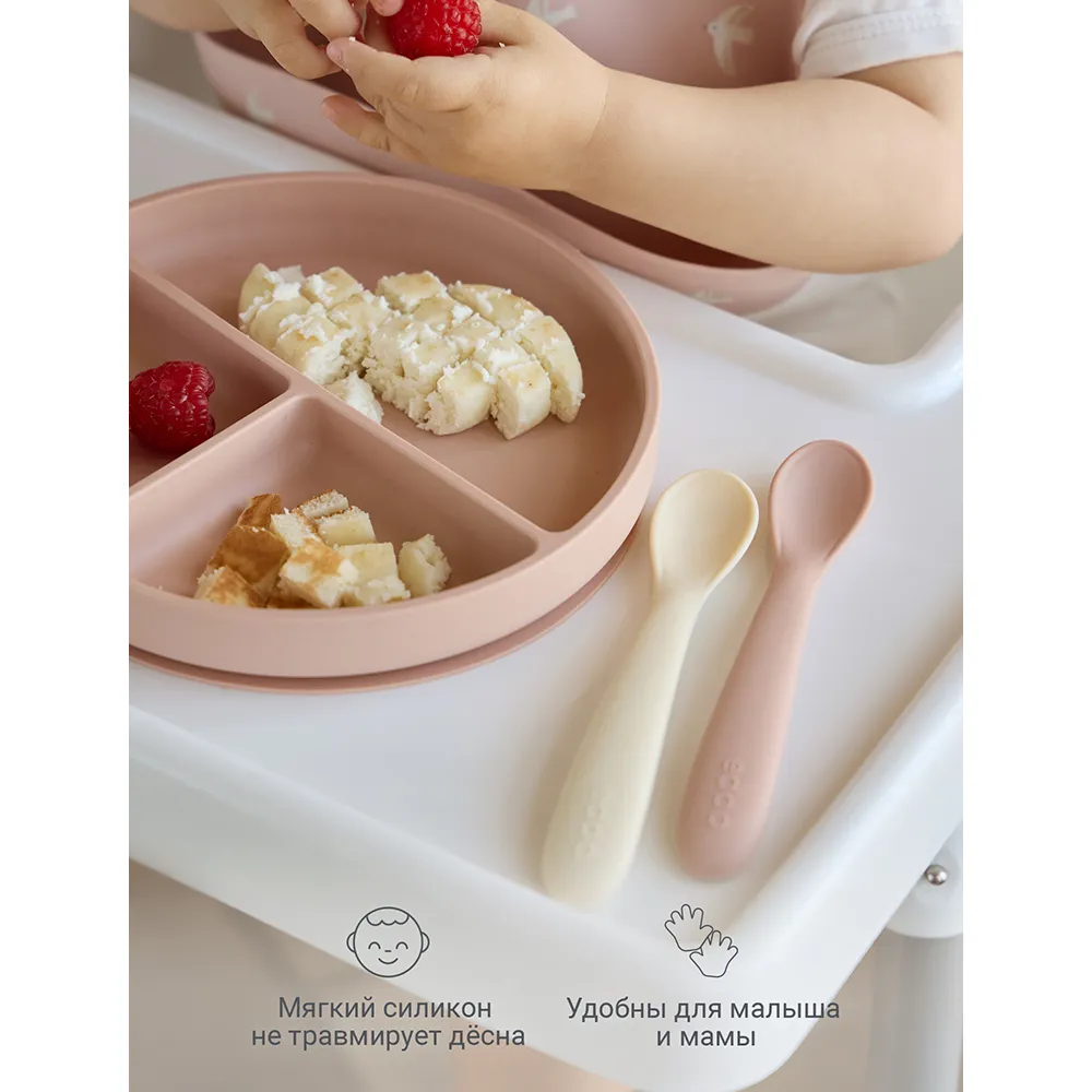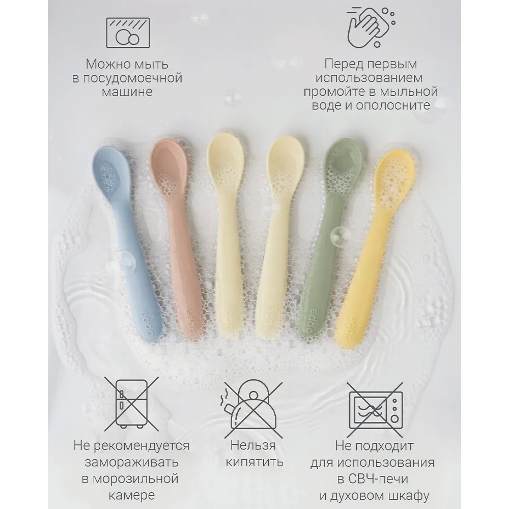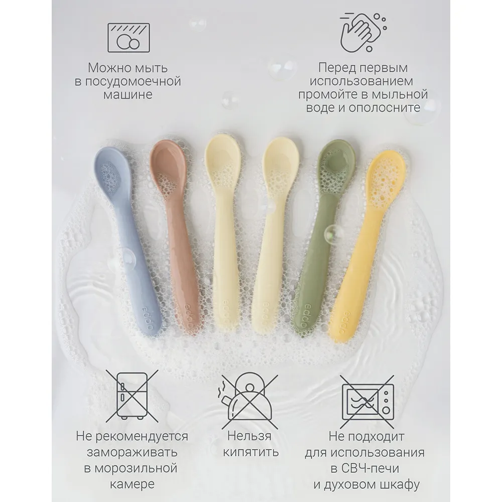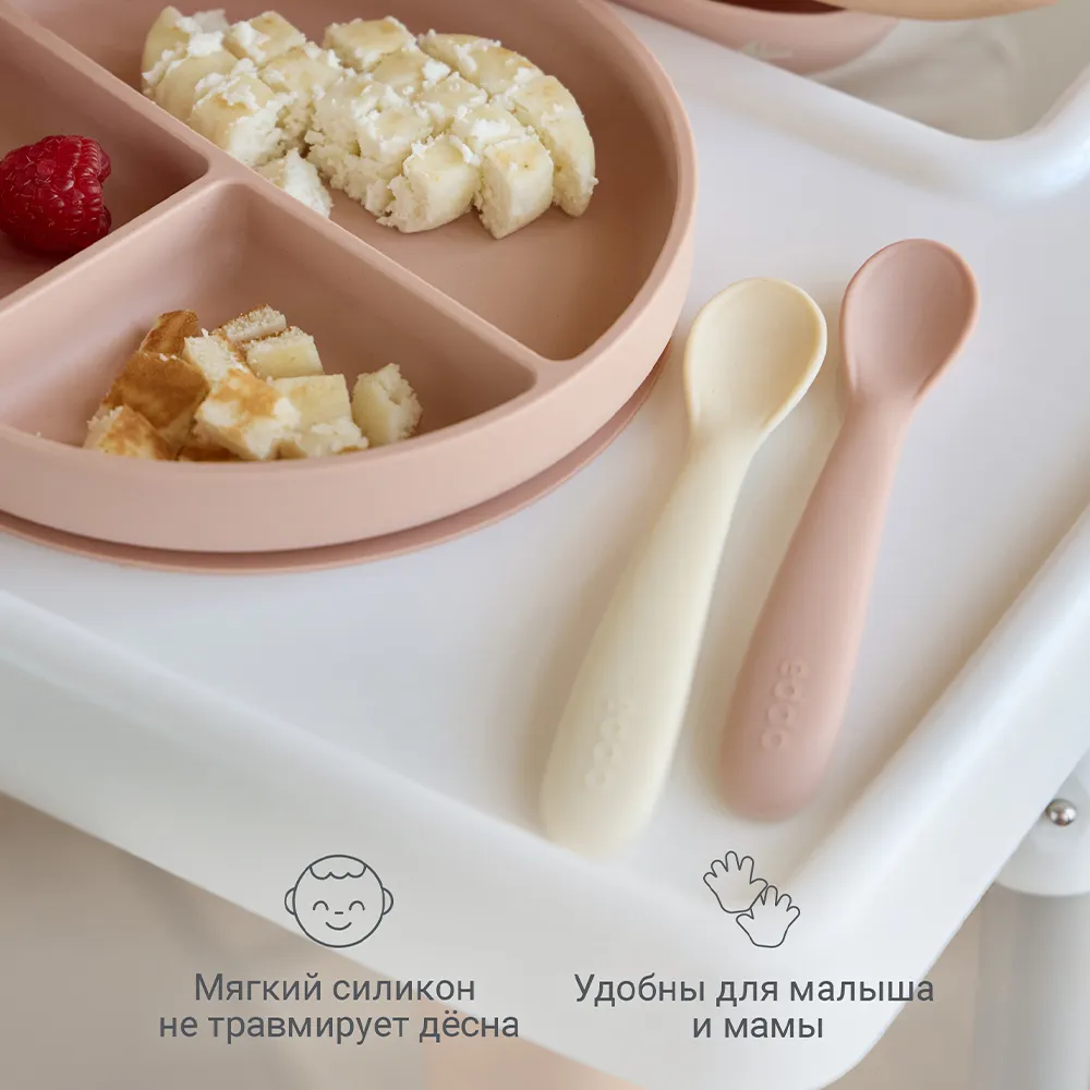Набор силиконовых ложек с мягким черпачком и эргономичной ручкой с нейлоновым стержнем внутри для комфортного кормления. Черпачок оптимального объёма 2 мл выполнен из 100% мягкого платинового силикона, полностью безопасного для дёсен малыша. Ложки легко моются в посудомоечной машине. Набор выполнен из платинового силикона пастельных оттенков — безопасного, практичного и приятного на ощупь.