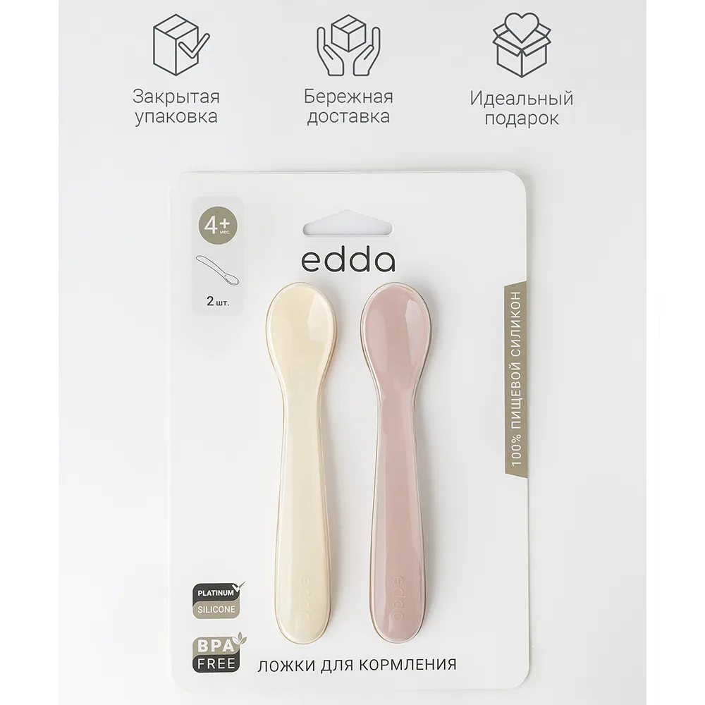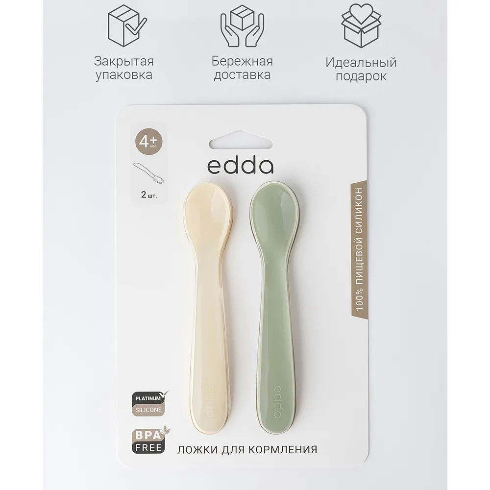 - Уникальная сочетаемость — в наборе 2 ложечки, одна из которых в нейтральном оттенке, а вторая цветная. Можно подобрать набор приборов под свою посуду edda.