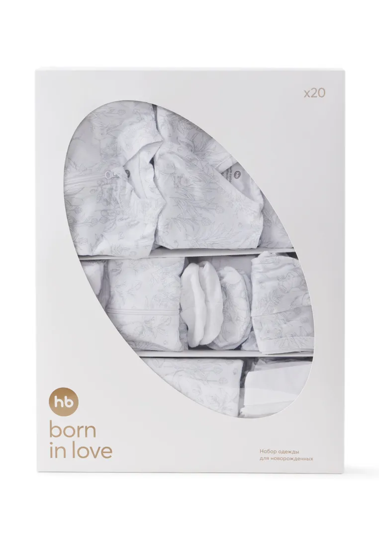 Набор одежды станет лучшим подарком новорожденному. В комплекте 20 предметов, которые полностью покрывают потребности в одежде в первые 2-3 месяца жизни малыша. Все вещи сшиты из мягкого натурального хлопка. Предметы идеально сочетаются между собой, а, значит, вы не задумываясь составите идеально красивый образ.
