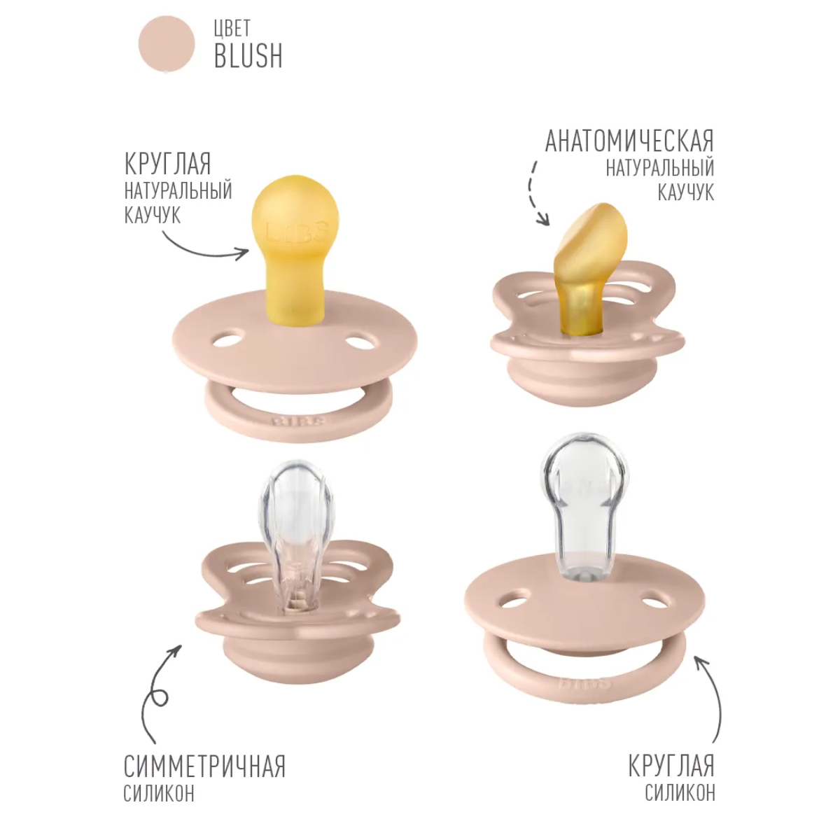Набор состоит из 4-х пустышек: Colour, Couture, Supreme и De Lux из каучука и медицинского силикона, с различными формами соска.