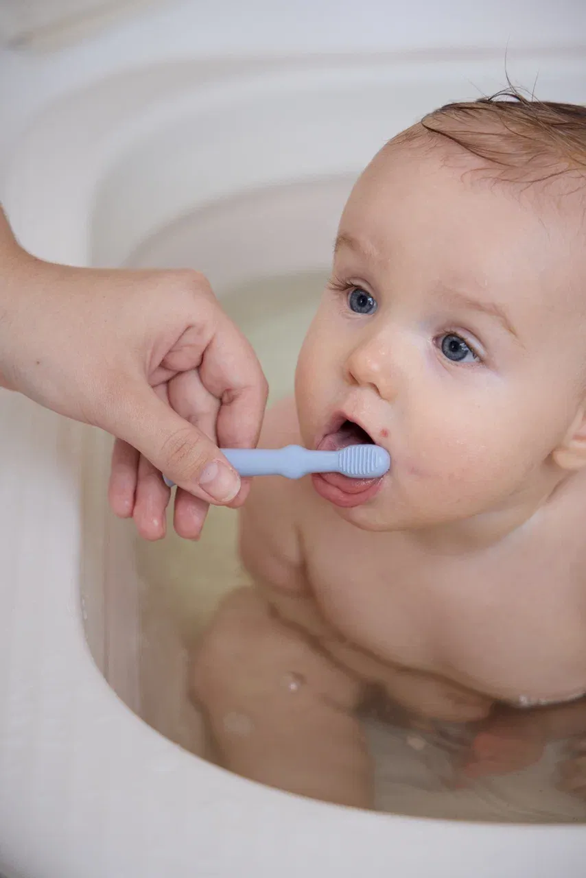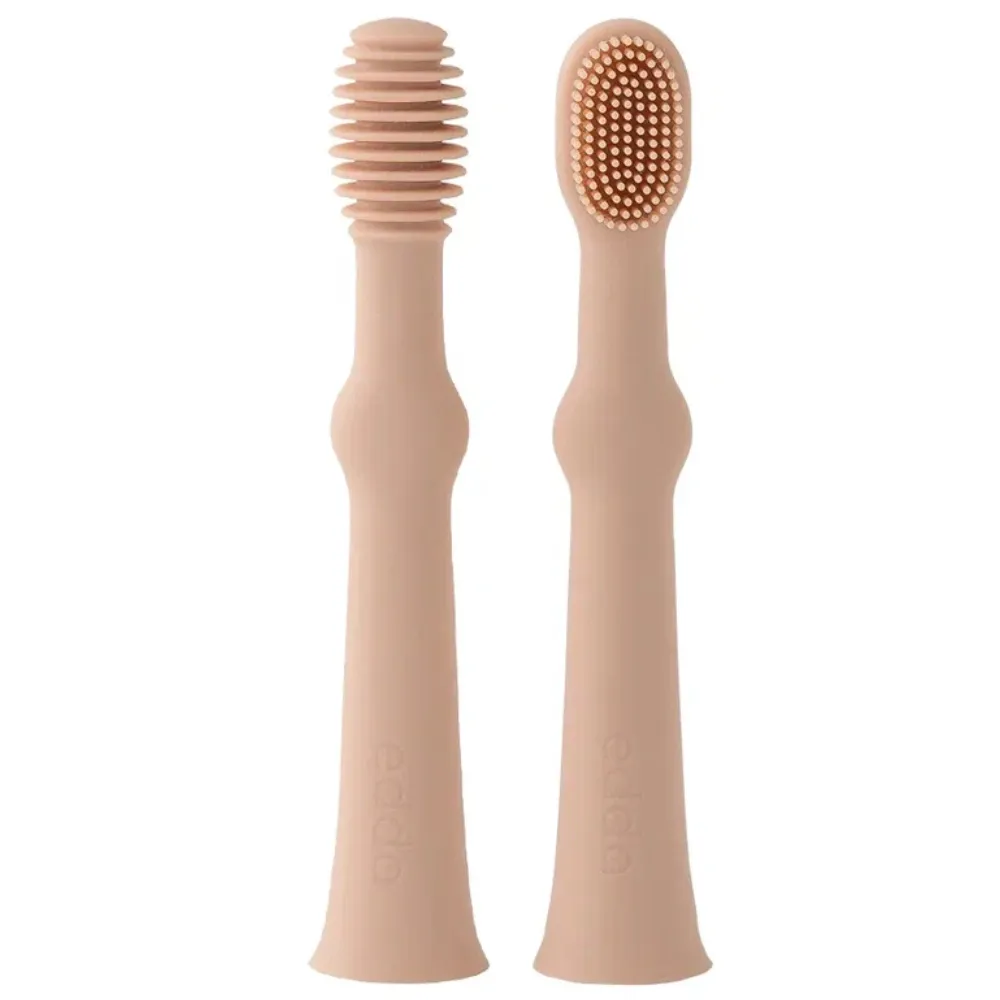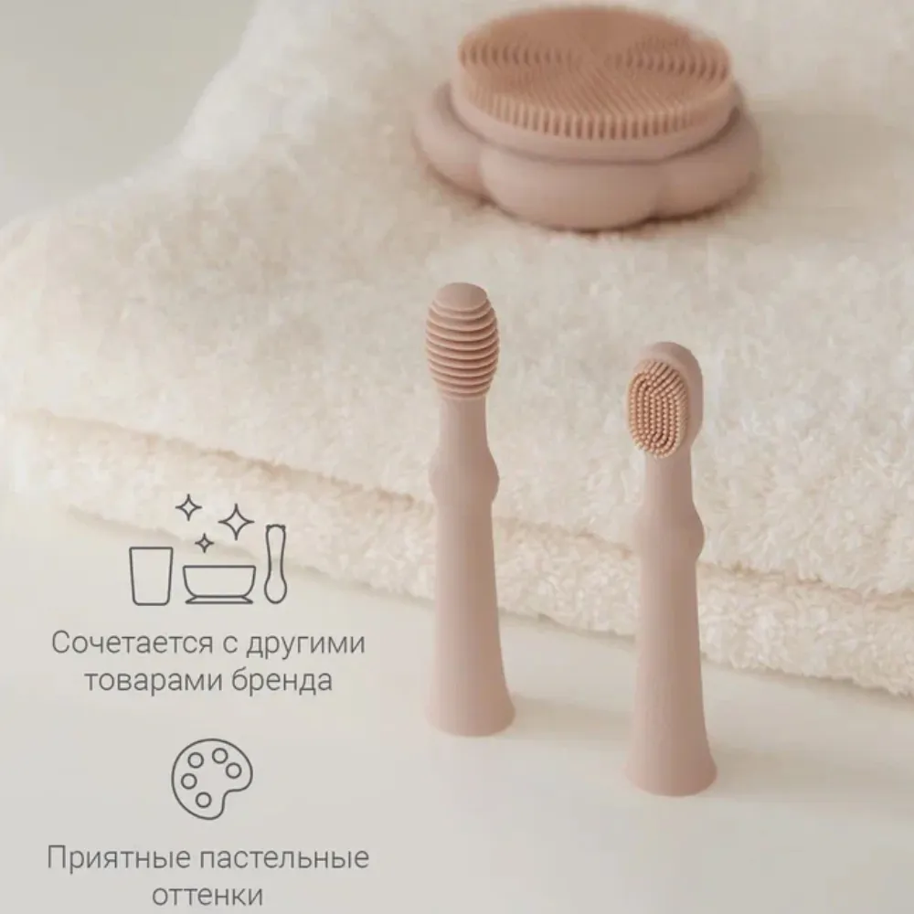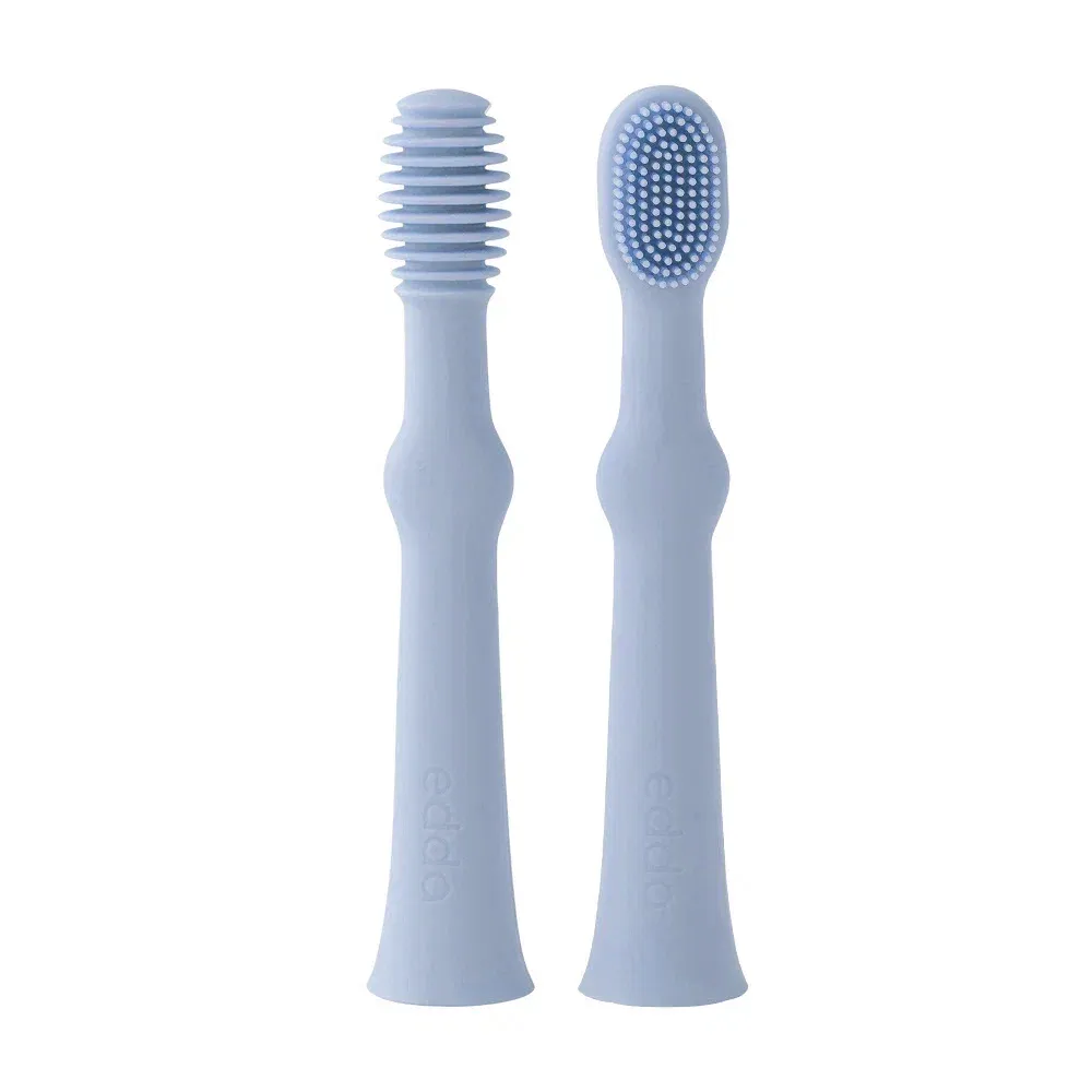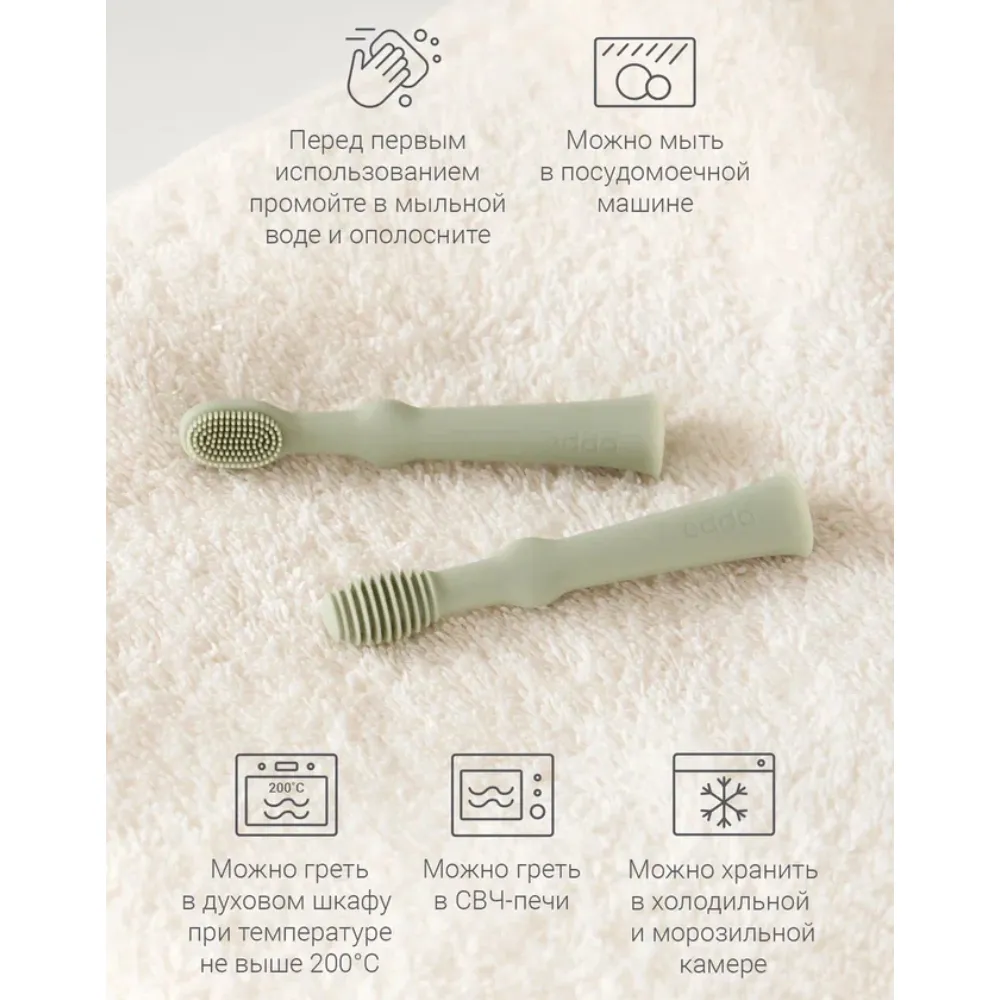 Нежные и мягкие щетинки улучшают кровообращение и помогают уменьшить давление в период прорезывания зубов. Щёточка для языка бережно очищает его от остатков пищи и налёта.