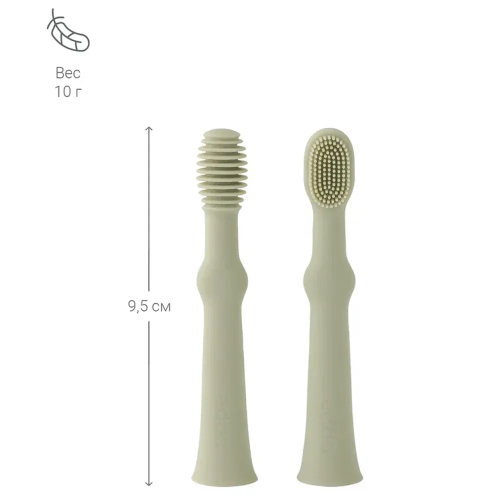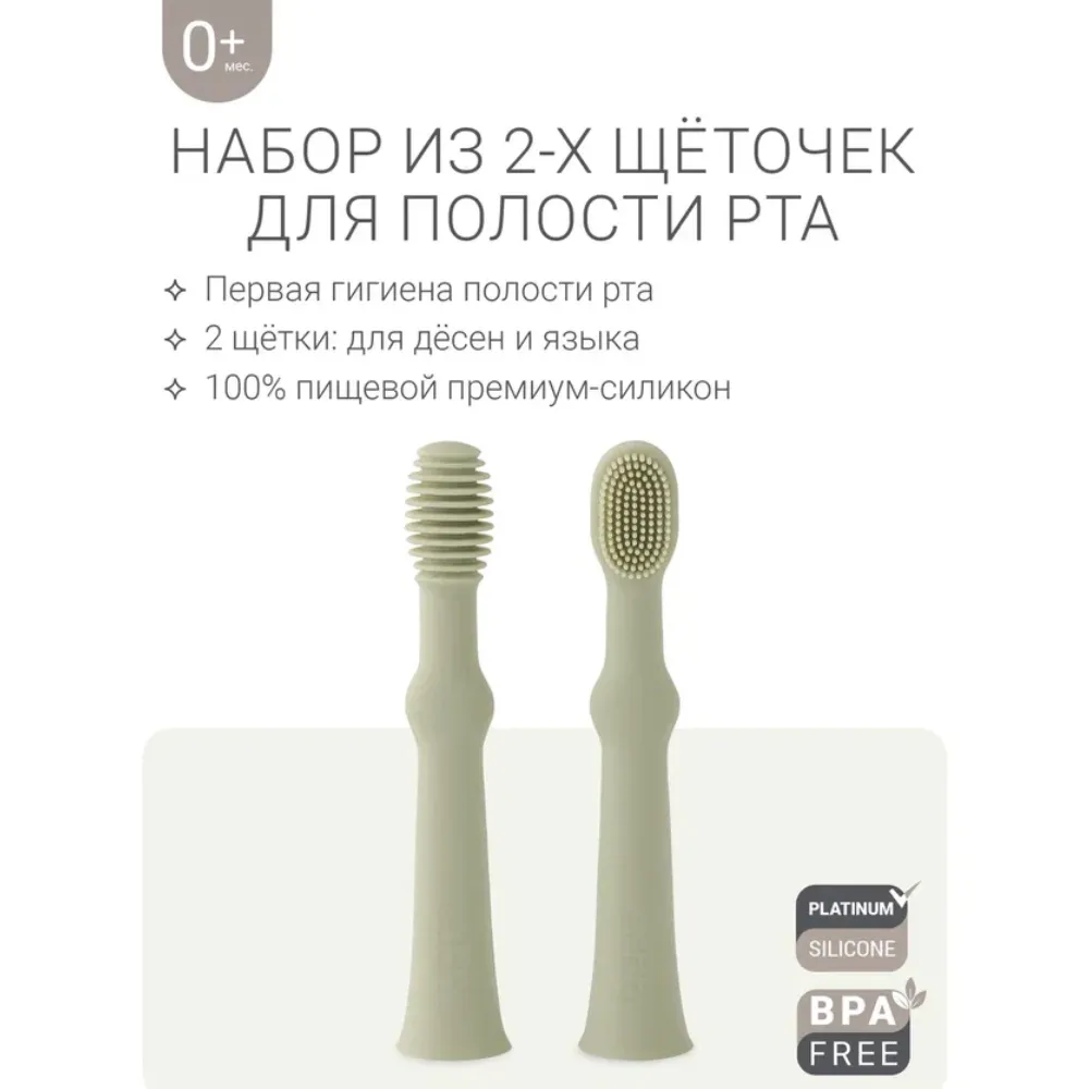 Комплект из двух щёток-массажёров для дёсен малыша и ухода за полостью рта подходит для ежедневного использования и приучает к гигиене с рождения.