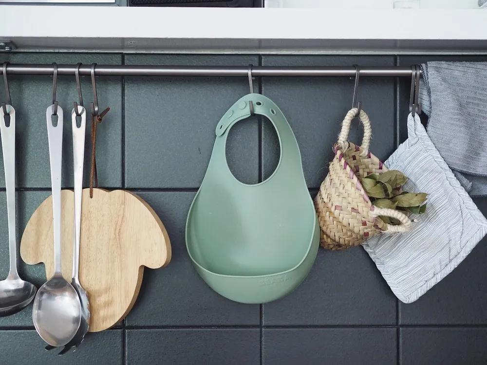 Нагрудник сделан из практичного легкого силикона, его достаточно сполоснуть водой, он моментально сохнет. Можно мыть в посудомоечной машине. Не содержит BPA, BPF, BPS, PVC и фталатов.