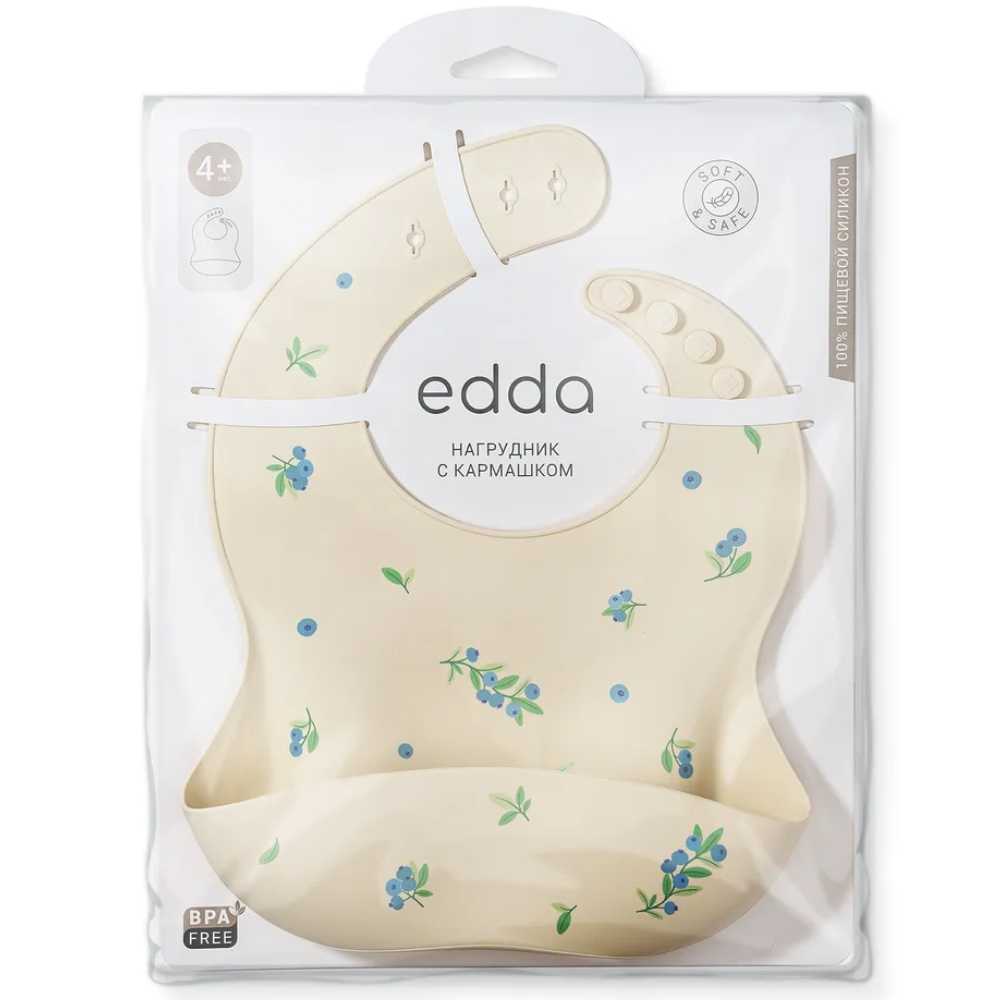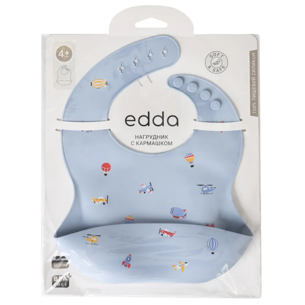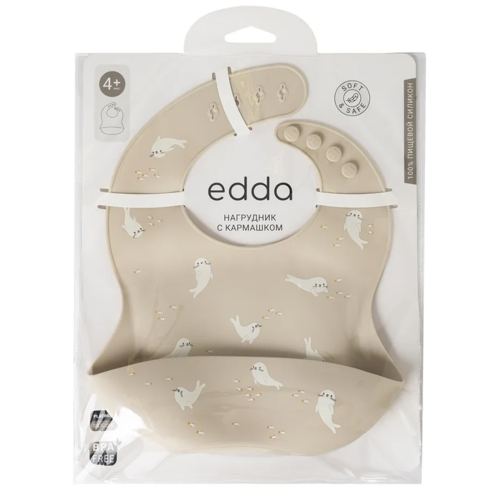 Для аккуратного кормления edda создала стильный нагрудник из пищевого гипоаллергенного Platinum-силикона. С ним родителям проще организовать питание малыша и предупредить нечаянные проливания. Нагрудник не сковывает движения и плотно прилегает к телу ребёнка. Вокруг шеи — особенно мягкий силикон, при этом высокая твердость силикона в области кармашка позволяет сохранять форму при попадании в него еды и жидкости.
