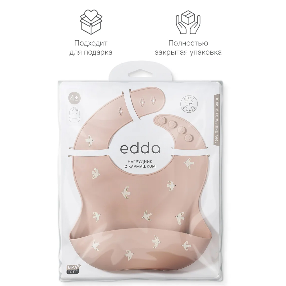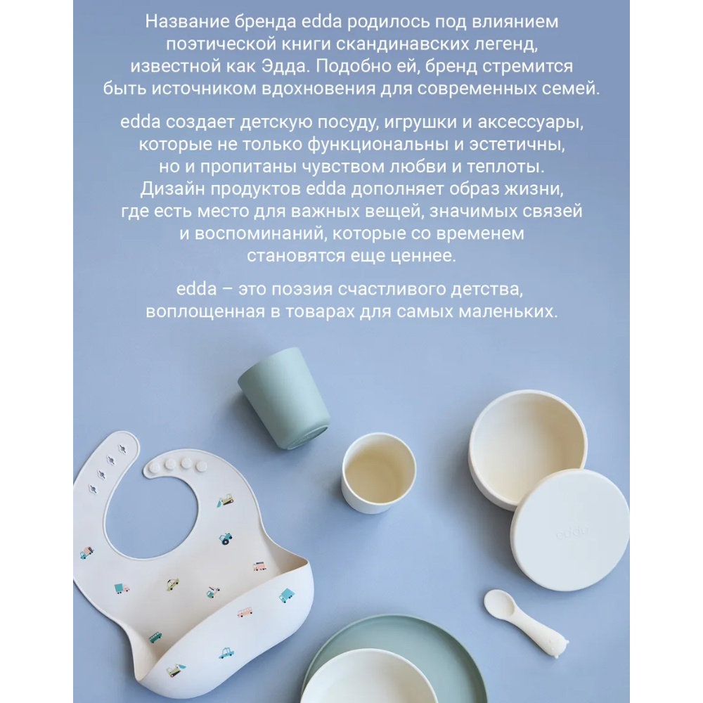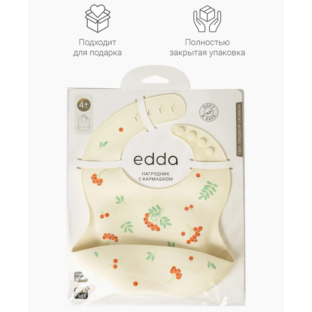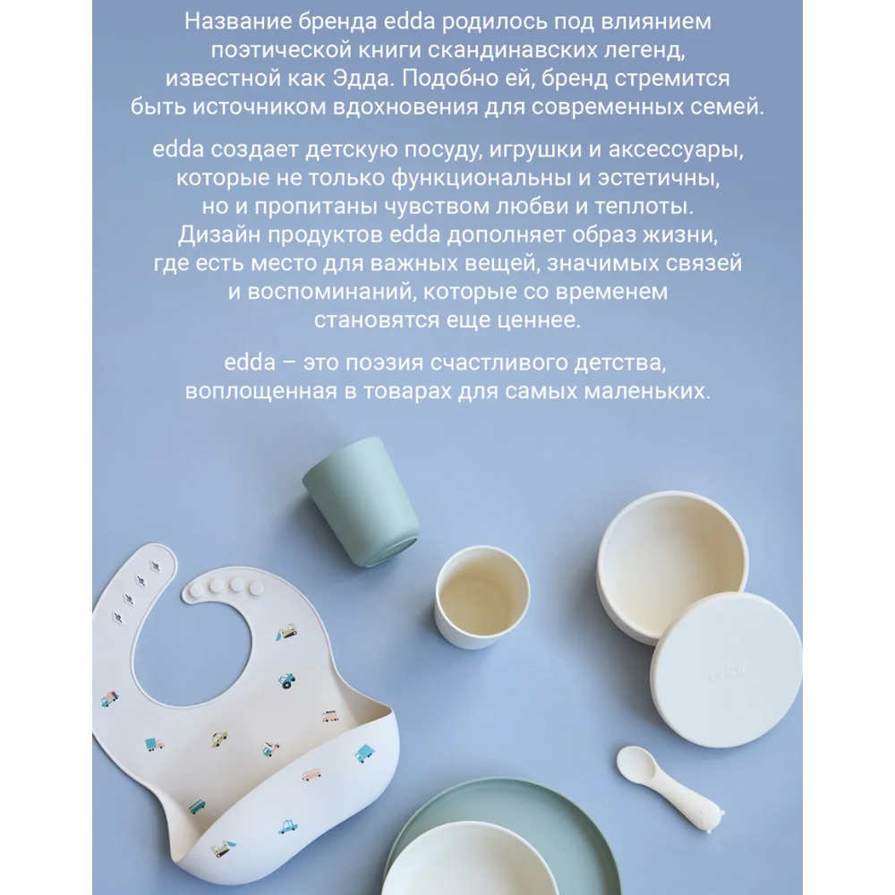 Для аккуратного кормления edda создала стильный нагрудник из пищевого гипоаллергенного Platinum-силикона. С ним родителям проще организовать питание малыша и предупредить нечаянные проливания. Нагрудник не сковывает движения и плотно прилегает к телу ребёнка. Вокруг шеи — особенно мягкий силикон, при этом высокая твердость силикона в области кармашка позволяет сохранять форму при попадании в него еды и жидкости.
