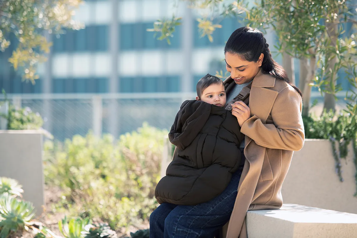 Встроенные карманы идеально расположены, чтобы согревать руки родителей.