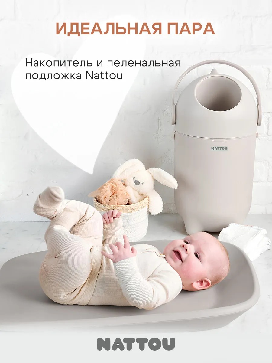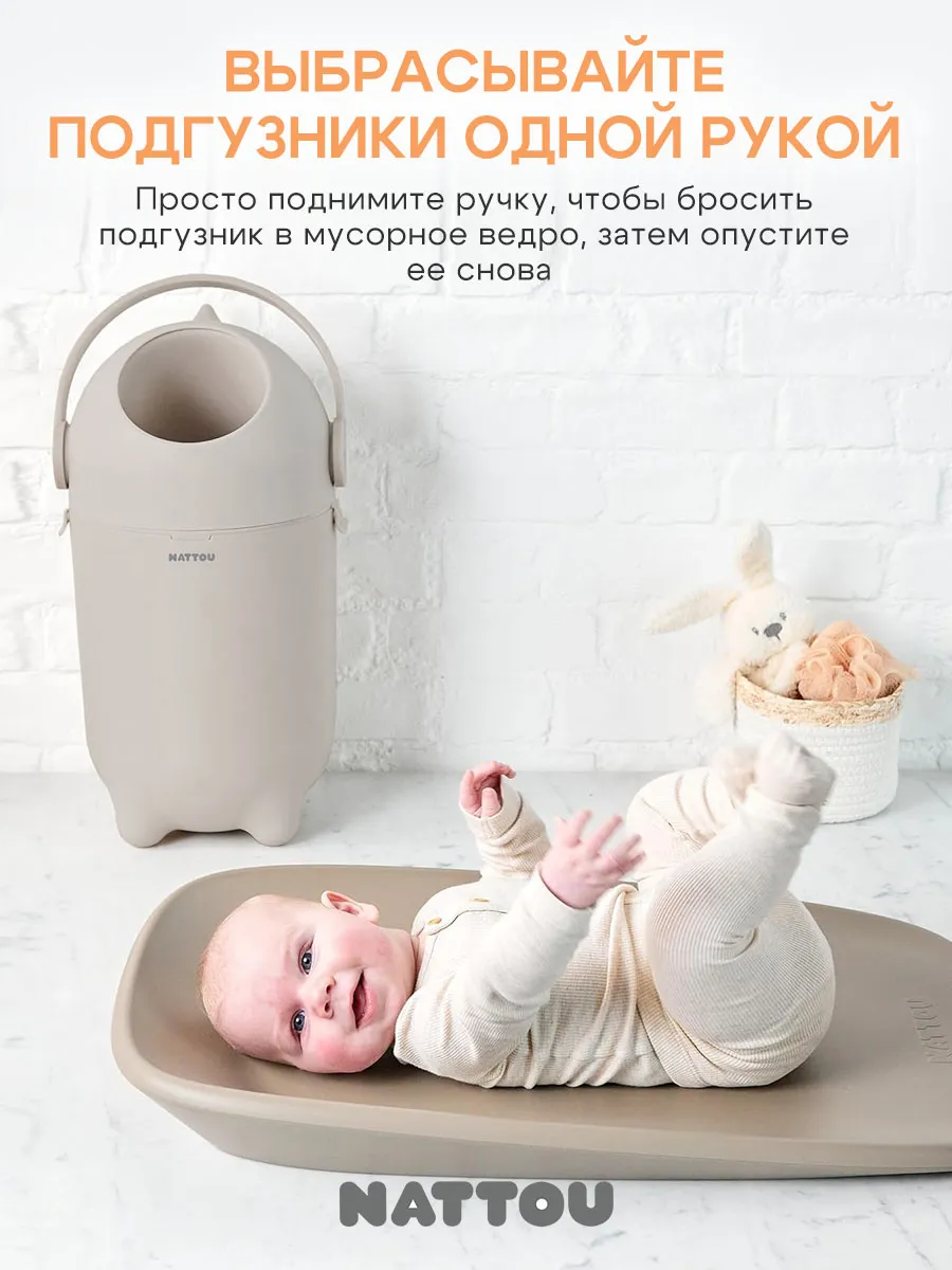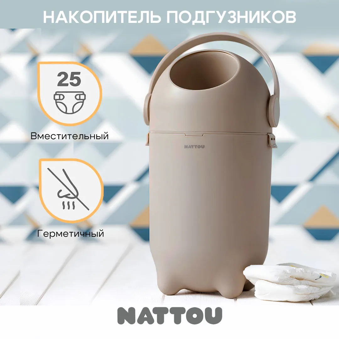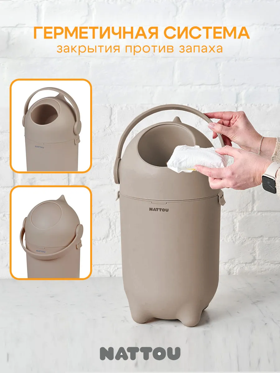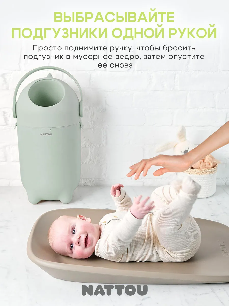 Предотвратите появление неприятных запахов в комнате благодаря накопителю для подгузников Nattou. Максимально простой в использовании: поднимите ручку, чтобы бросить подгузник в накопитель, а затем опустите ее снова, чтобы подгузник упал в мешок. Это легко сделать одной рукой! Накопитель очень экономичный, для него подходят любые мусорные пакеты. Благодаря специальной системе закрытия, запах от подгузников остается внутри, а не снаружи в комнате!