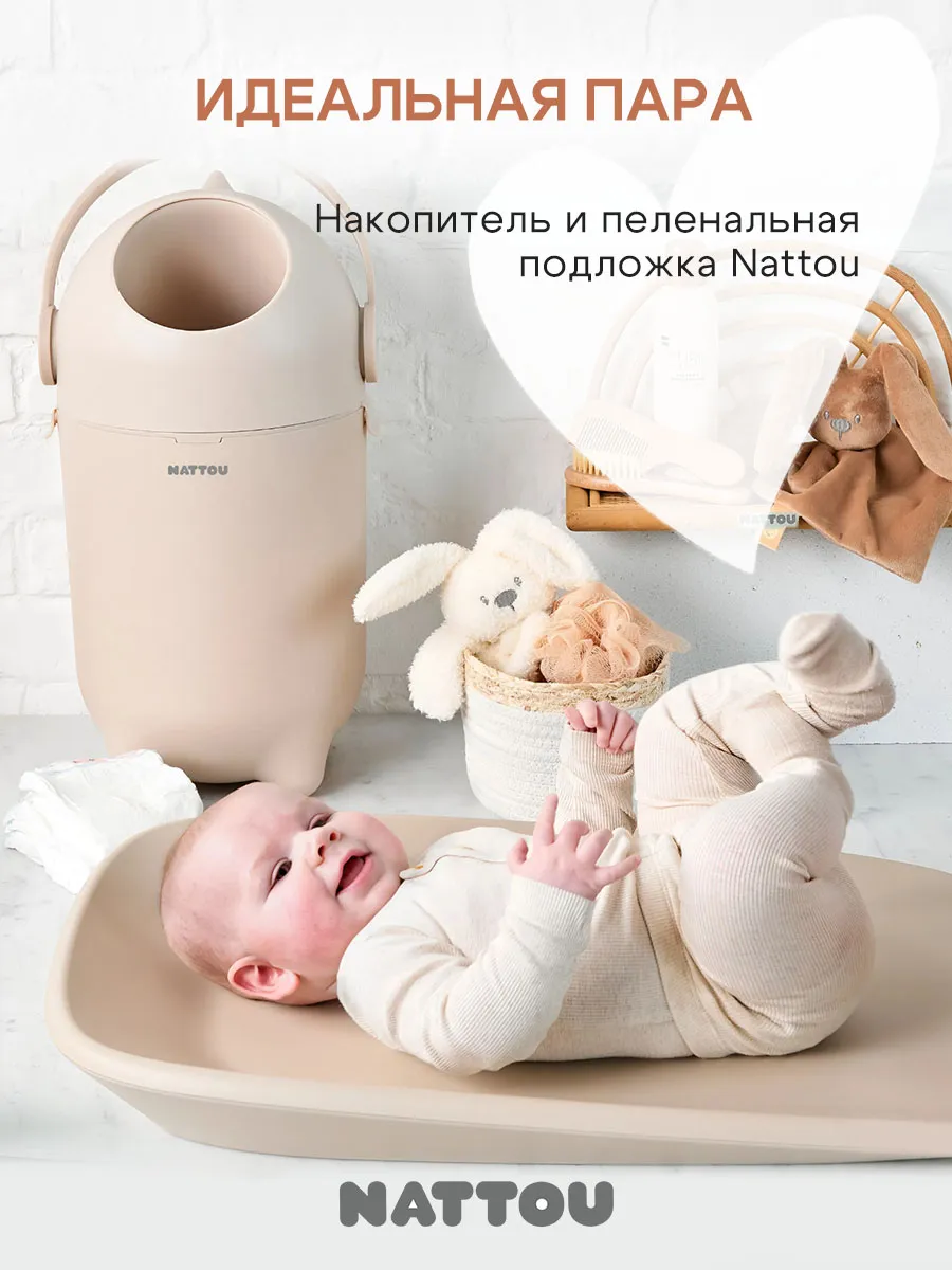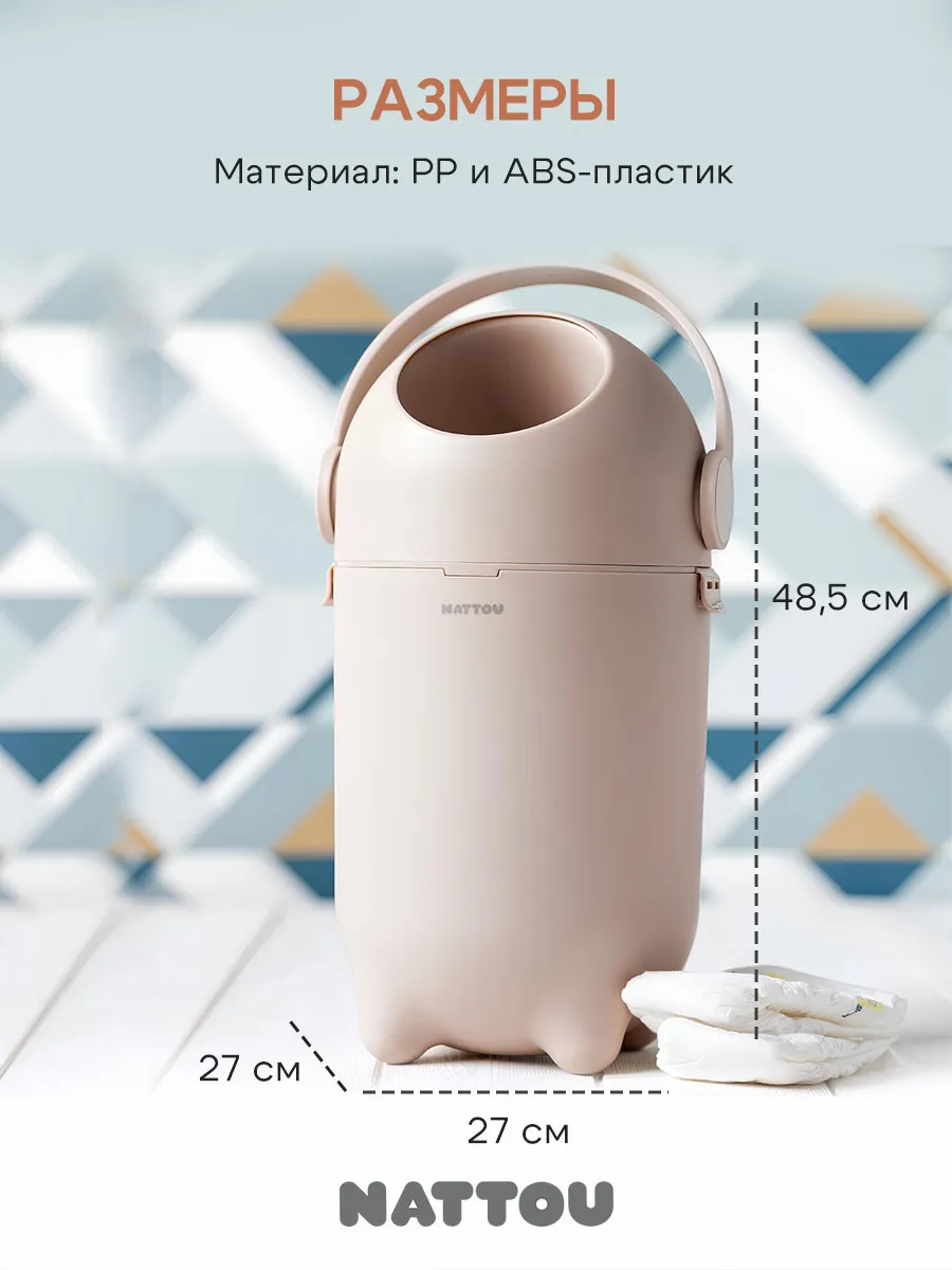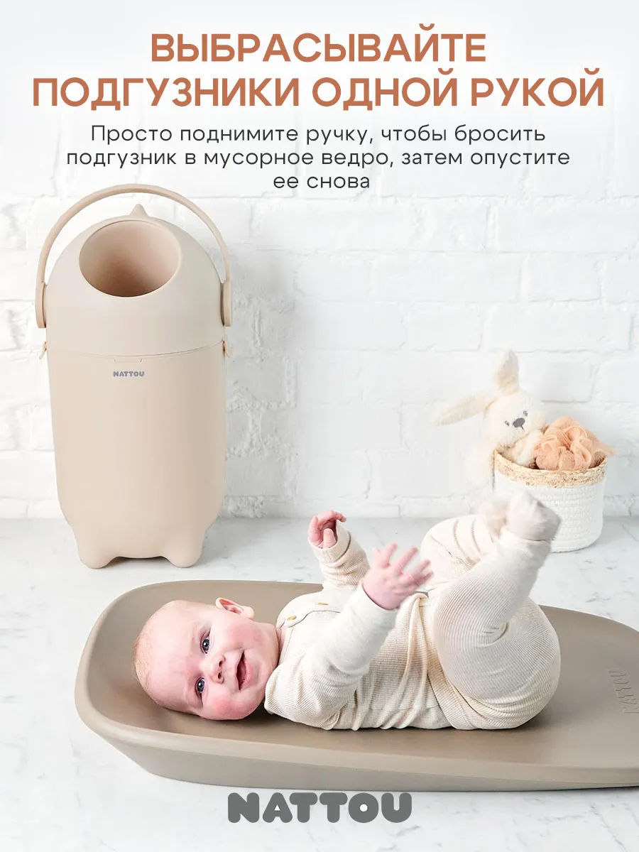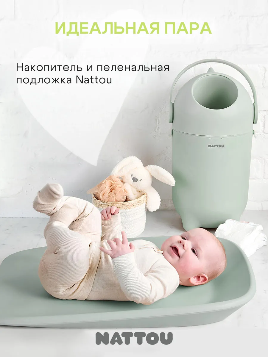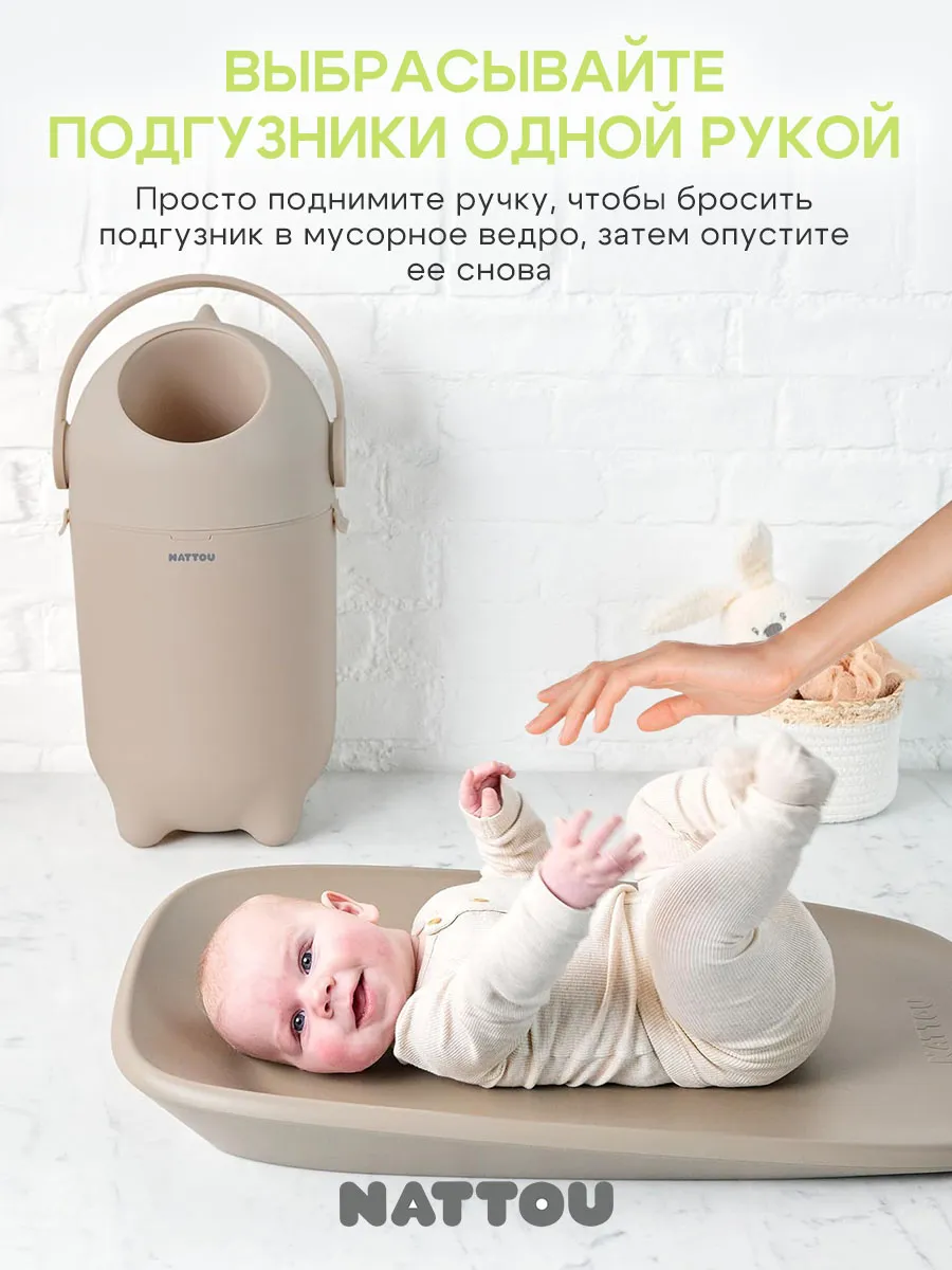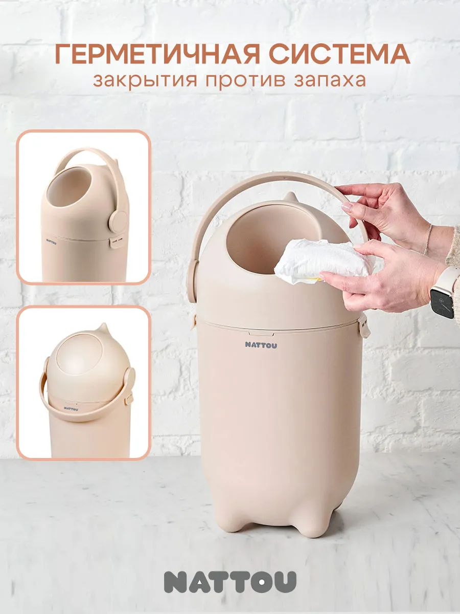 Предотвратите появление неприятных запахов в комнате благодаря накопителю для подгузников Nattou. Максимально простой в использовании: поднимите ручку, чтобы бросить подгузник в накопитель, а затем опустите ее снова, чтобы подгузник упал в мешок. Это легко сделать одной рукой! Накопитель очень экономичный, для него подходят любые мусорные пакеты. Благодаря специальной системе закрытия, запах от подгузников остается внутри, а не снаружи в комнате!