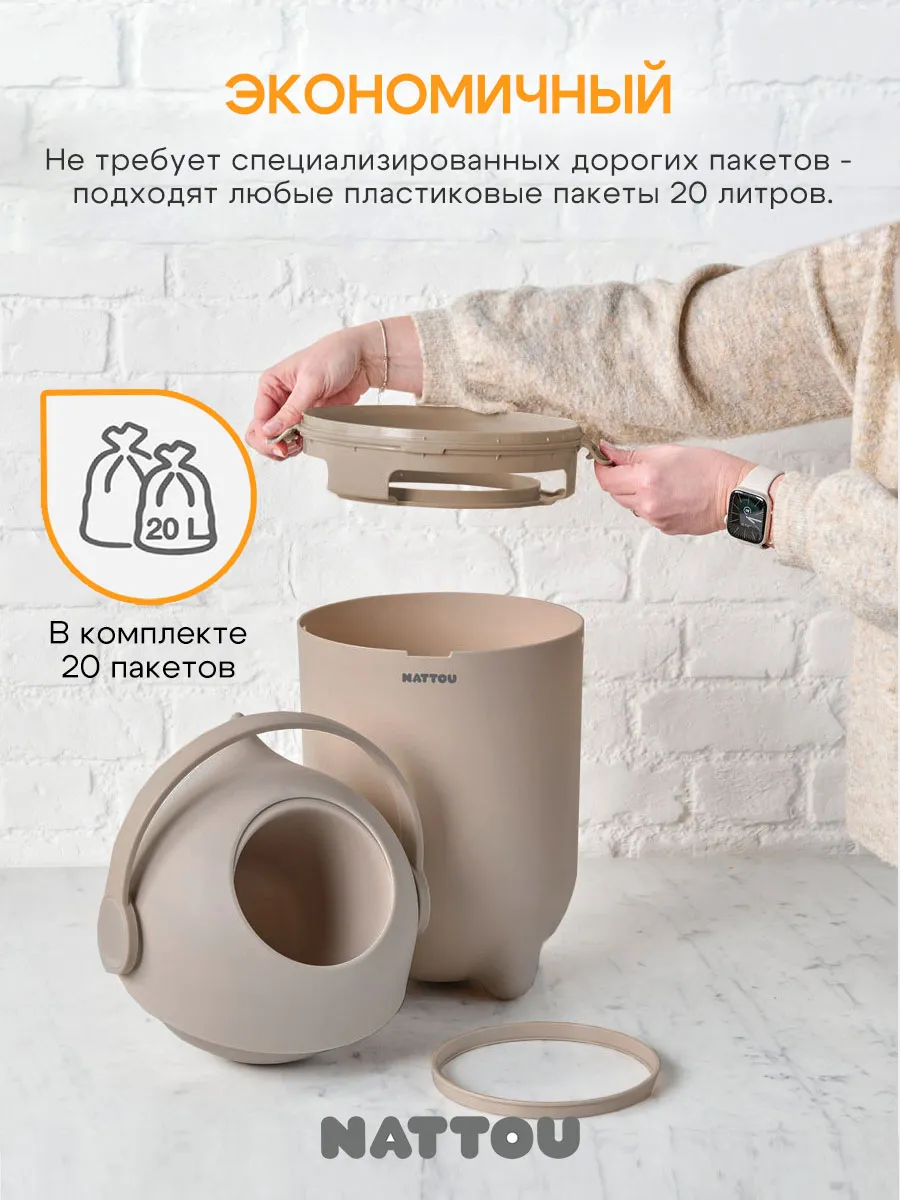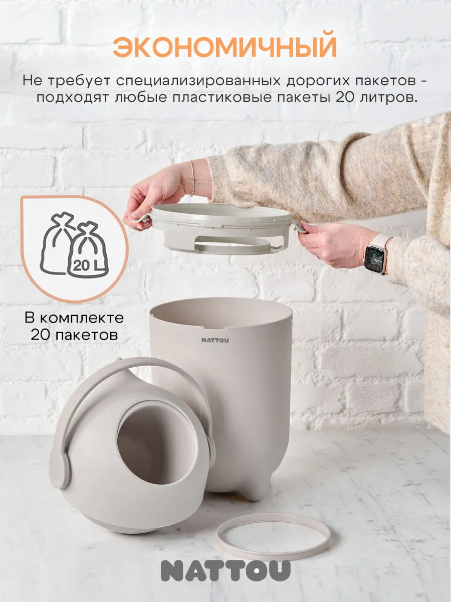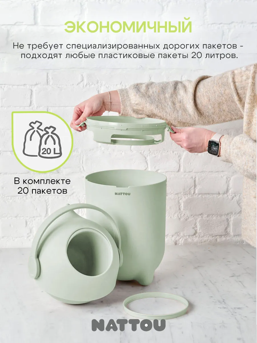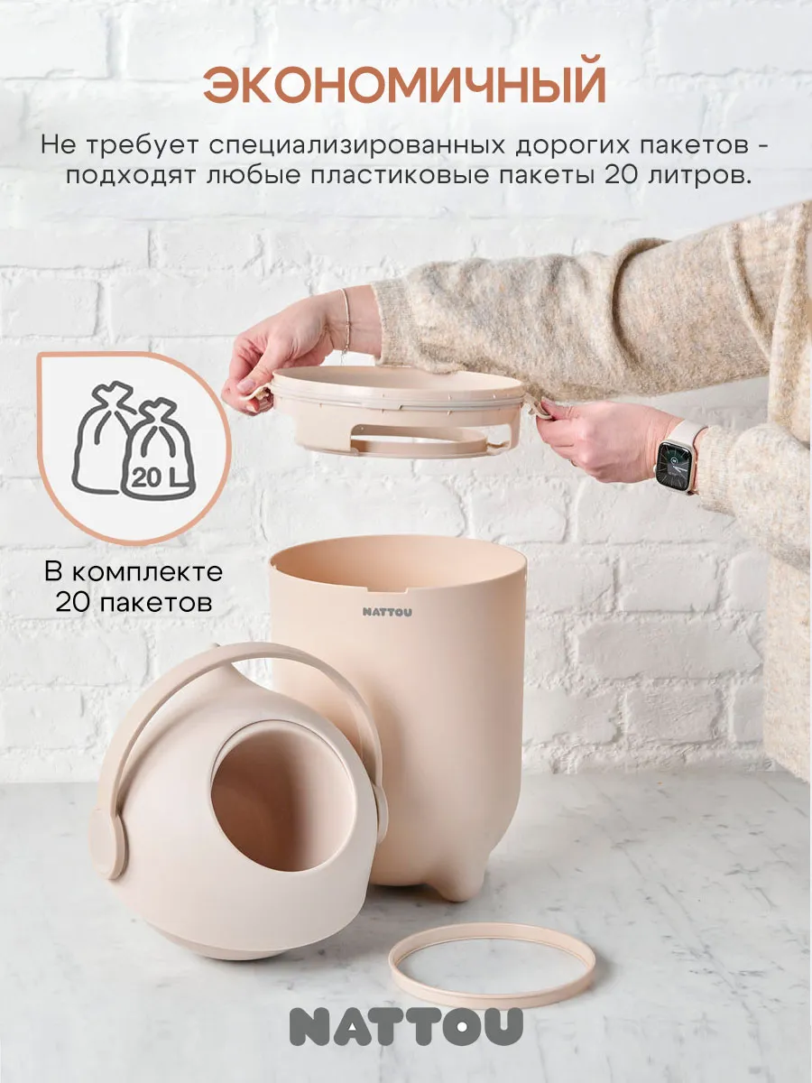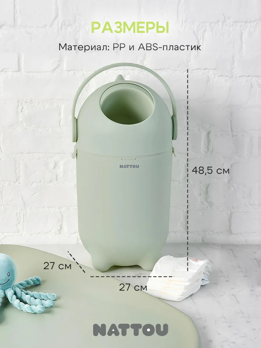 Предотвратите появление неприятных запахов в комнате благодаря накопителю для подгузников Nattou. Максимально простой в использовании: поднимите ручку, чтобы бросить подгузник в накопитель, а затем опустите ее снова, чтобы подгузник упал в мешок. Это легко сделать одной рукой! Накопитель очень экономичный, для него подходят любые мусорные пакеты. Благодаря специальной системе закрытия, запах от подгузников остается внутри, а не снаружи в комнате!