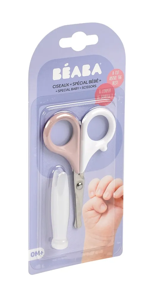 Детские ножницы Beaba с круглым кончиком для безопасной стрижки ногтей ребенка. Закругленные наконечники: чтобы избежать риска получения травмы. Упор для пальцев для взрослых: удобство использования для чистого и точного среза. Гигиеничность: защитный колпачок. Материал из нержавеющей стали: возможность полной дезинфекции спиртом при температуре 90°.