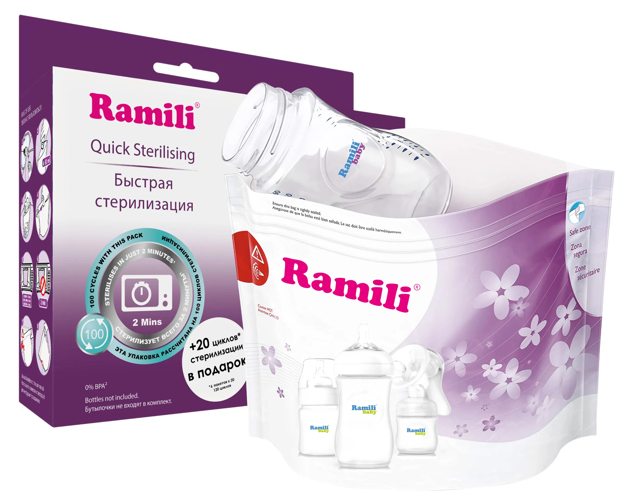 Пакеты для паровой стерилизации бутылочек, молокоотсосов и аксессуаров в СВЧ-печи Ramili RSB110