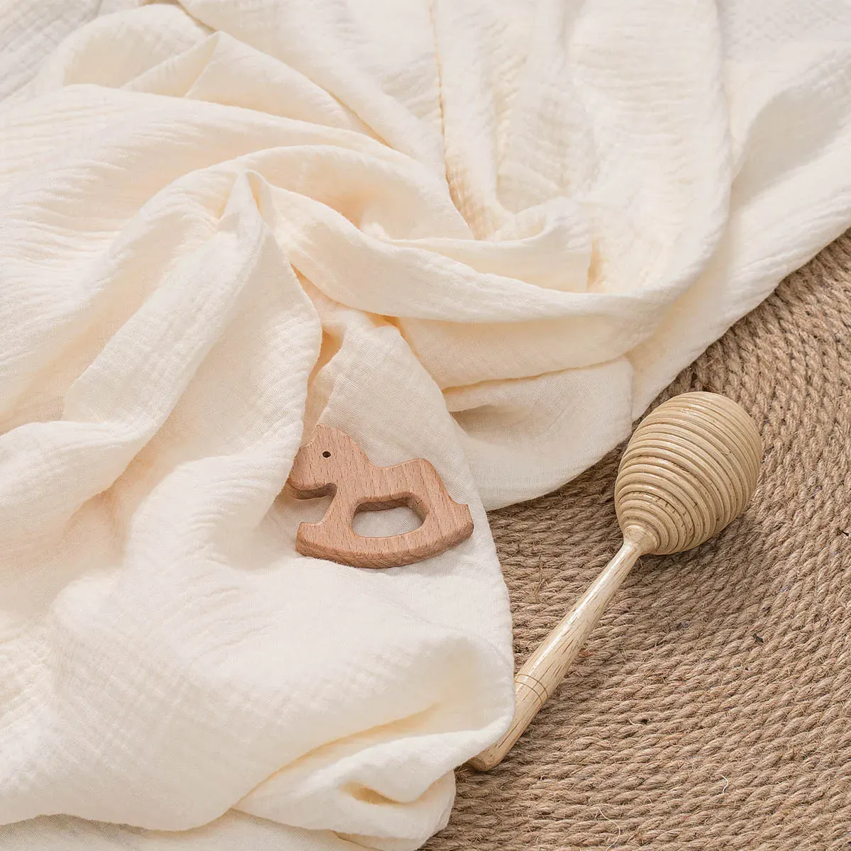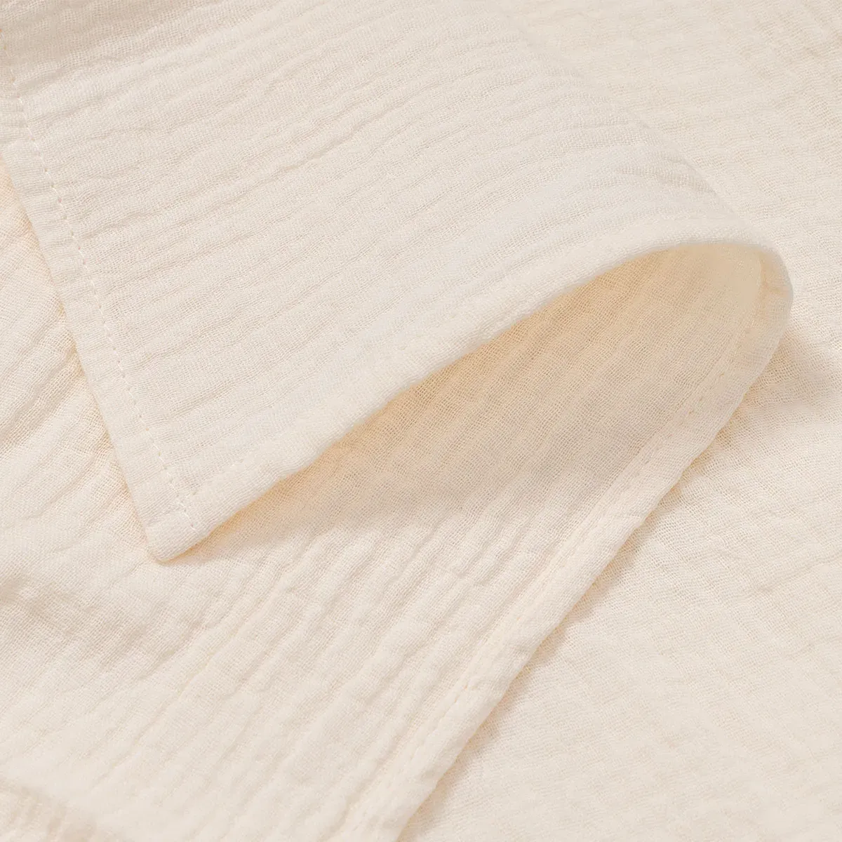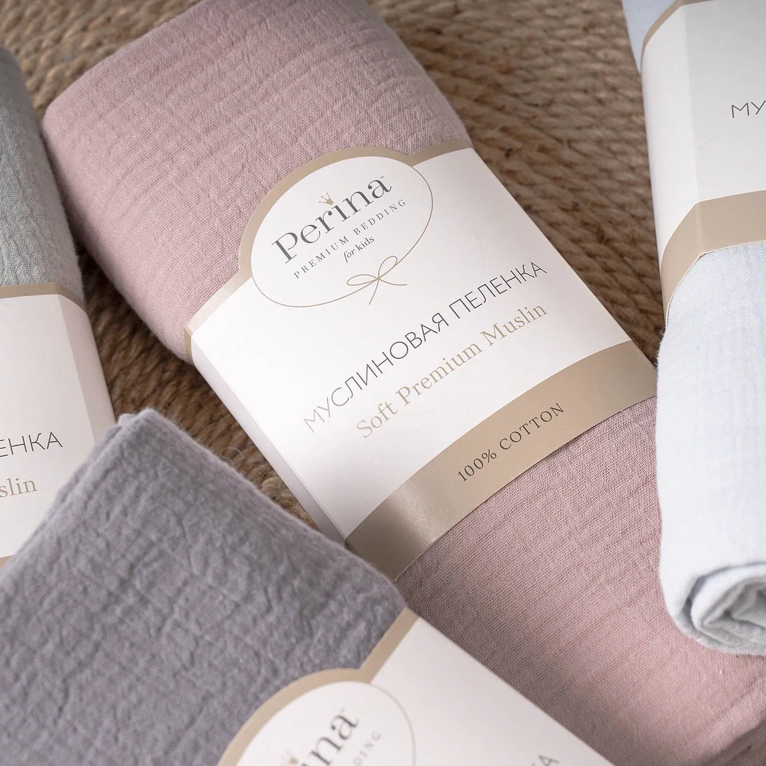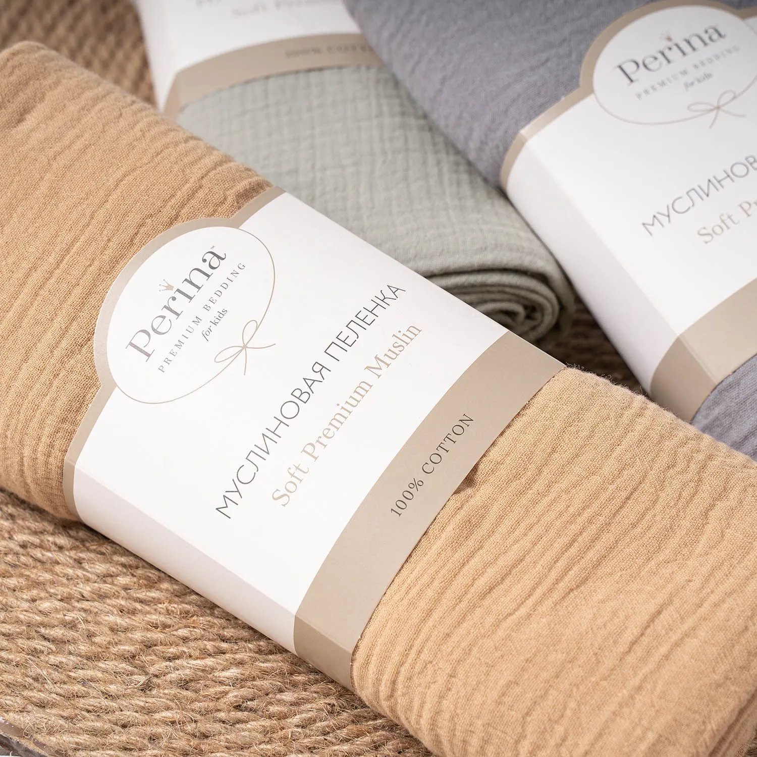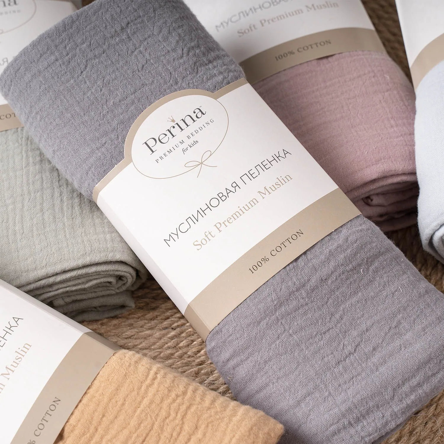 Ткань — премиальный жатый муслин высокого качества. Пеленки из жатого муслина более мягкие и сохнут гораздо быстрее, чем обычные. Такая ткань хорошо пропускает воздух, в них комфортно в любую погоду благодаря терморегулирующим свойствам.
